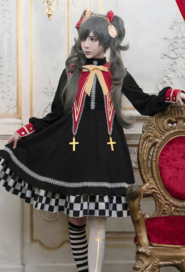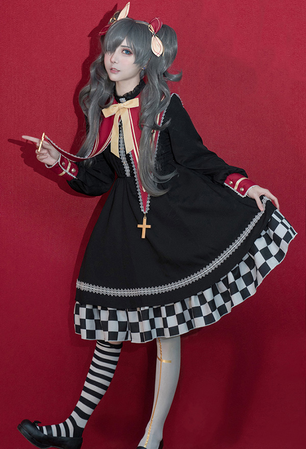 The costume includes dress, fake collar, headwear, stockings. It is made of uniform cloth, embroidery. .jpg)