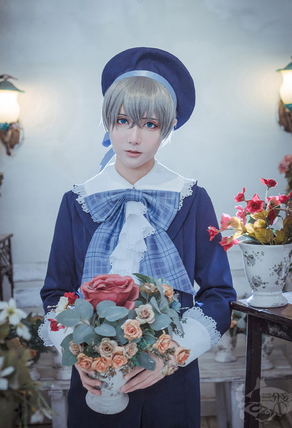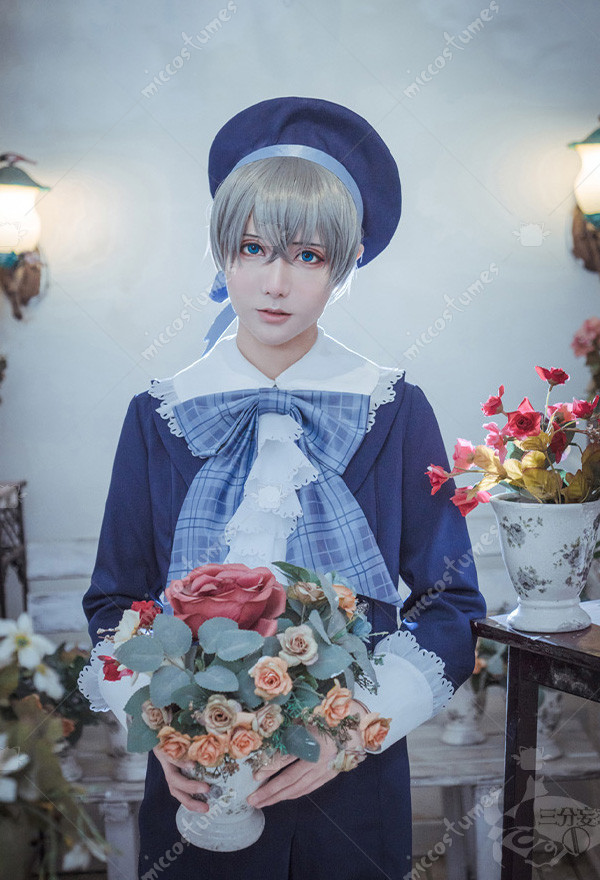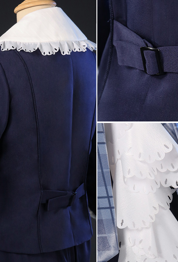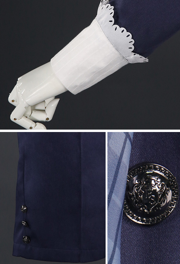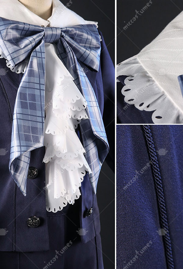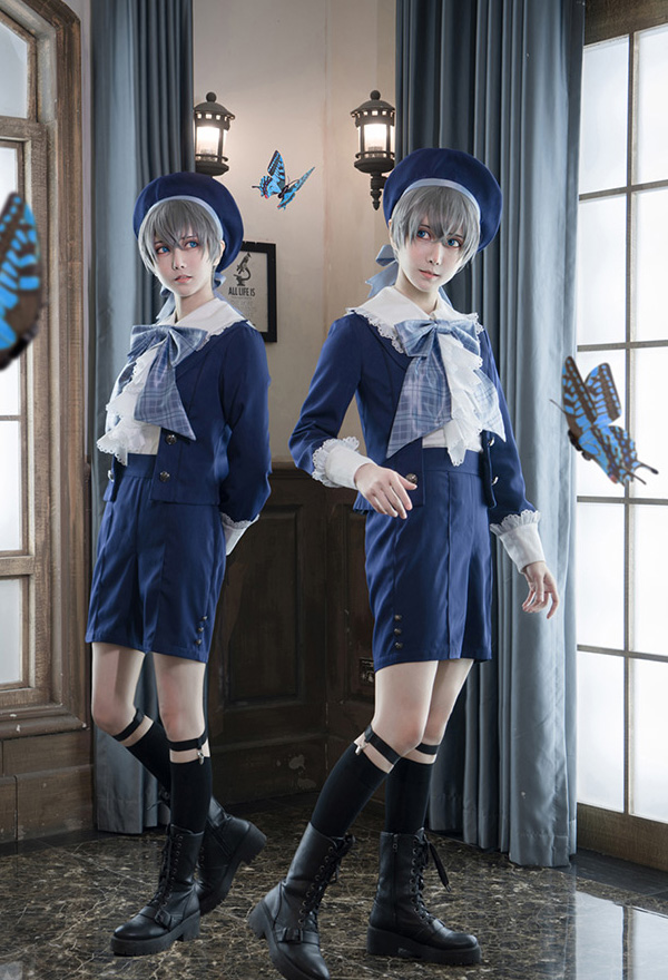 This costume includes shirt, uniform coat, pants, hat, bow tie, leg rings, socks. It is made of uniform cloth.