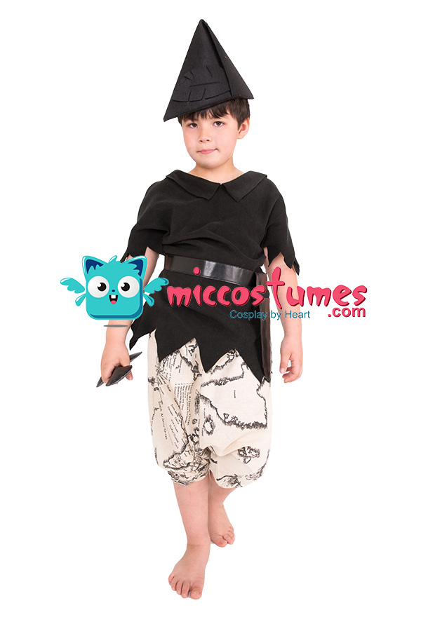 Please understand that some parts of the accessories are different from the images. There may be some minor alterations. This costume includes sword, belt, shirt, pointed hat. Suitable for children who are 43"-55" tall.