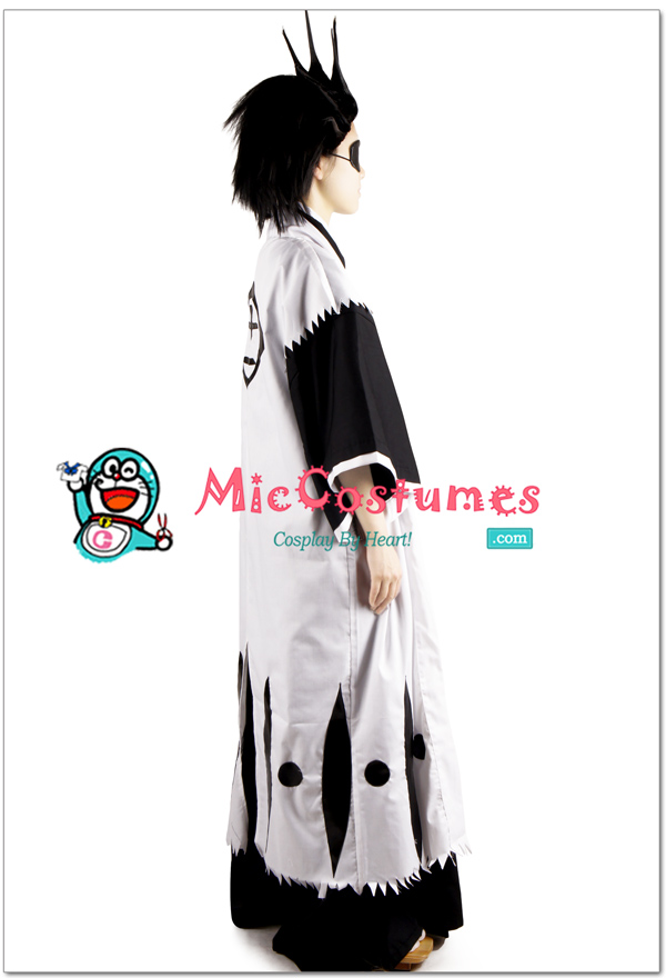 1.Robe: made from luxurious uniform cloth and being 104cm long (size S), it’s absolutely faithful to the anime style. Making you feel incredibly comfortable because of the classy cloth and also refined needlework, this robe has a white piece of cloth sewn together with collar on the front. It’s 48cm long. Three strings that are from 28-30cm long are sewn on the robe, helping you better wear it.