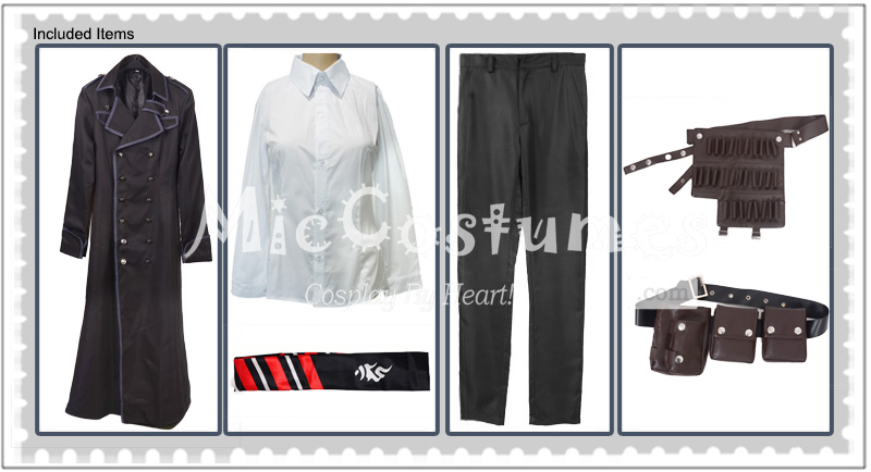 | Included Items | Shirt, overcoat, pants, tie, belt, waist bags, bandolier |