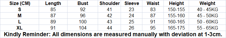2) For different product’s types,we will use specific methods to measure it, and apply to corresponding size charts, Pls check our size chart below before ordering.