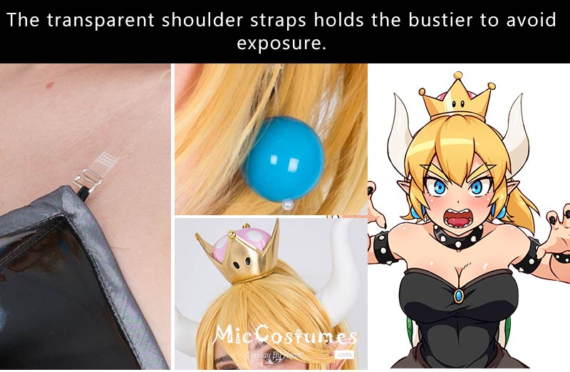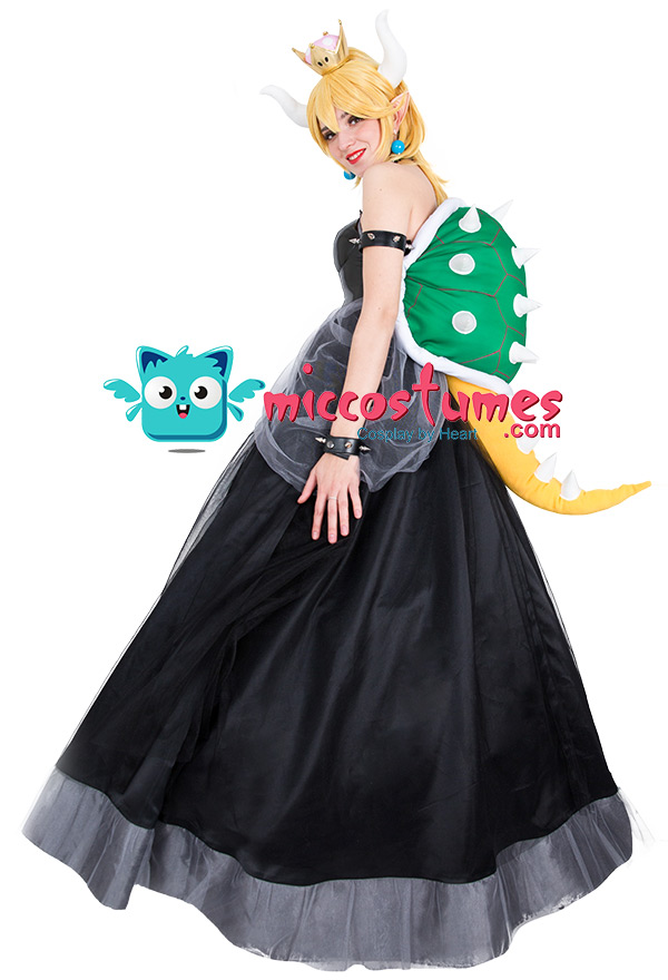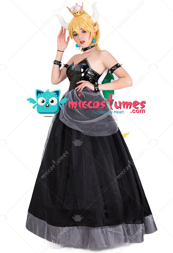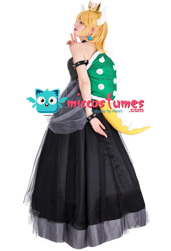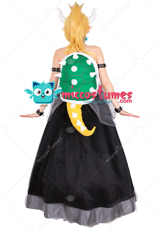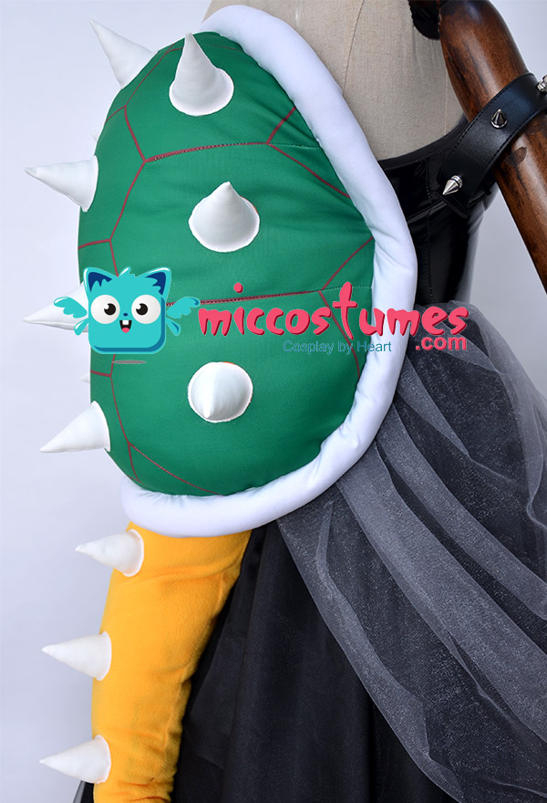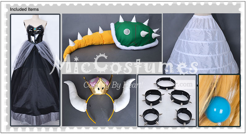 This costume includes dress, crown, headdress×2, necklace, arm ring×2, wristband×2, turtle shell decoration with tail, transparent shoulder strap×2, earring×2, crinoline. It is made of PU leather and gauze. Please note: the turtle shell props need to be filled with fluffy items by yourself. It is recommended to use the items such as cotton or newspapers. Please use the hair pin to fix the hairband so that it will not slide.