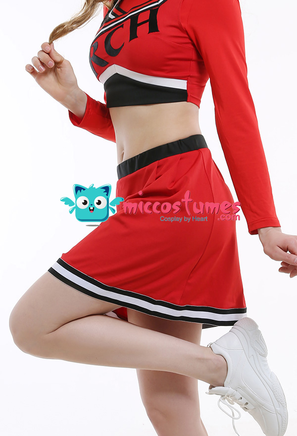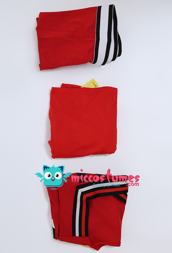 Costume Includes: long sleeve T-shirt, vest, skirt. Material: elastic cloth, spandex, adjustable fabric. Design Details: The outfits adopts elastic fabric and vest is made of milk silk. The vest is spliced and with logo embroidered. The skirt is of A shape and with adjustable waist design.