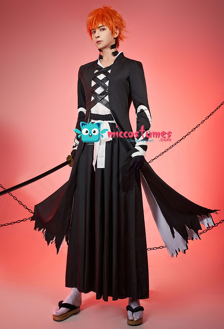 Buleach Death God Cosplay Costume Top and Pants with Jacket and Gloves Uniform Set