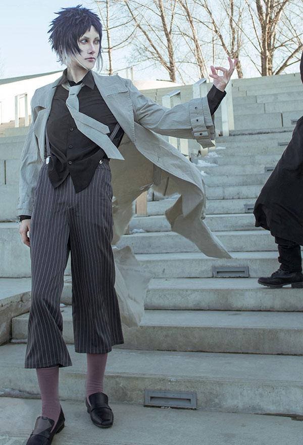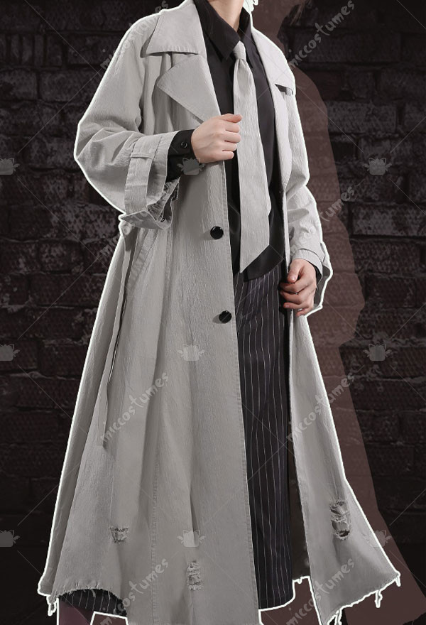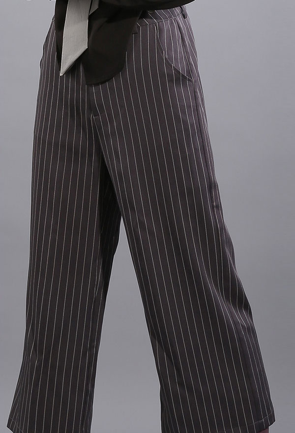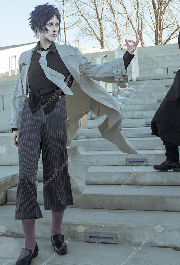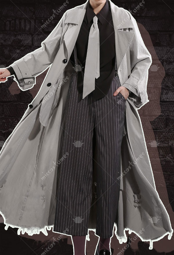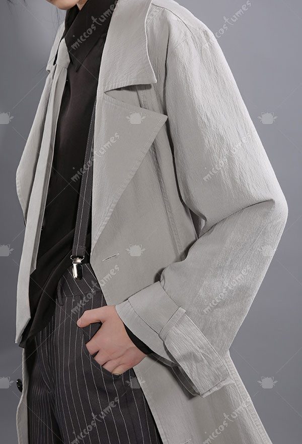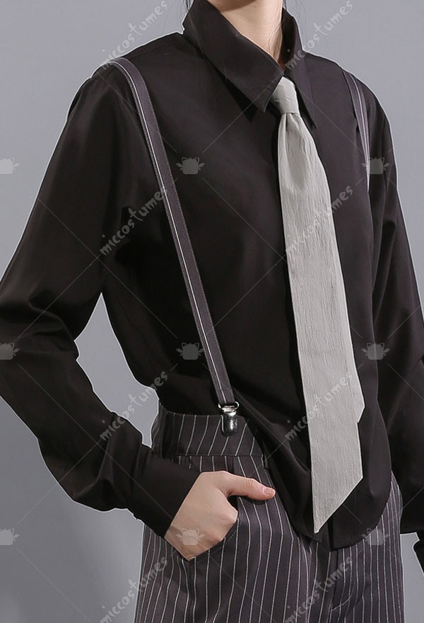 The costume includes coat, shirt, pants, socks, belt, tie, suspender. It is made of polyester.