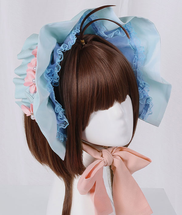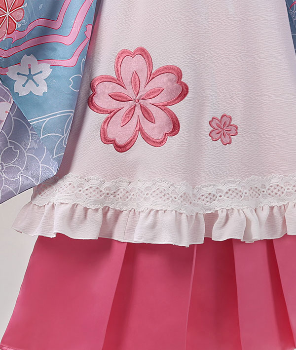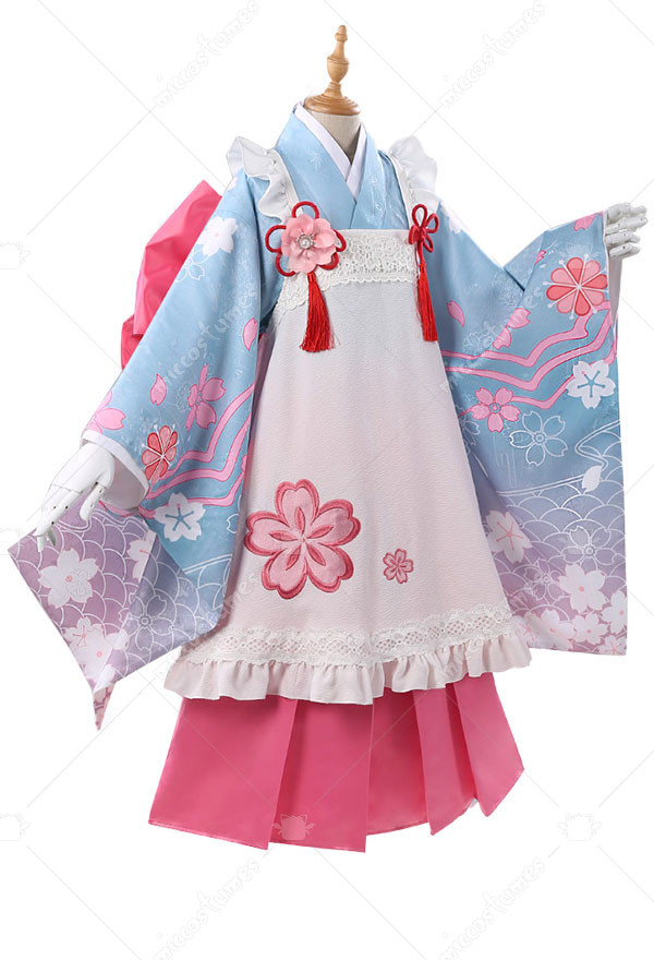 The costume includes apron, skirt, top, petticoat, bpwknot, headband, fake collar, pendant*2, strap*1. It is made of filamentary silver fabric, satin, jacquard fabric.