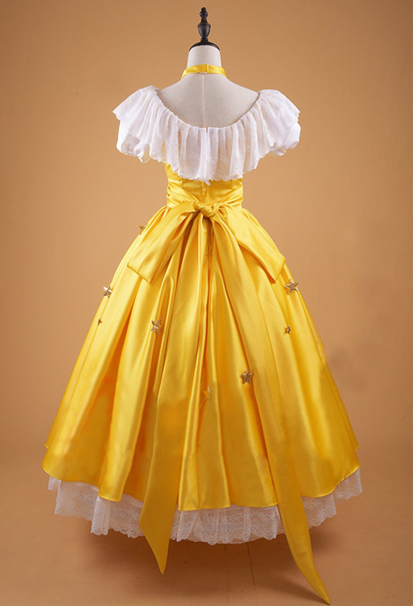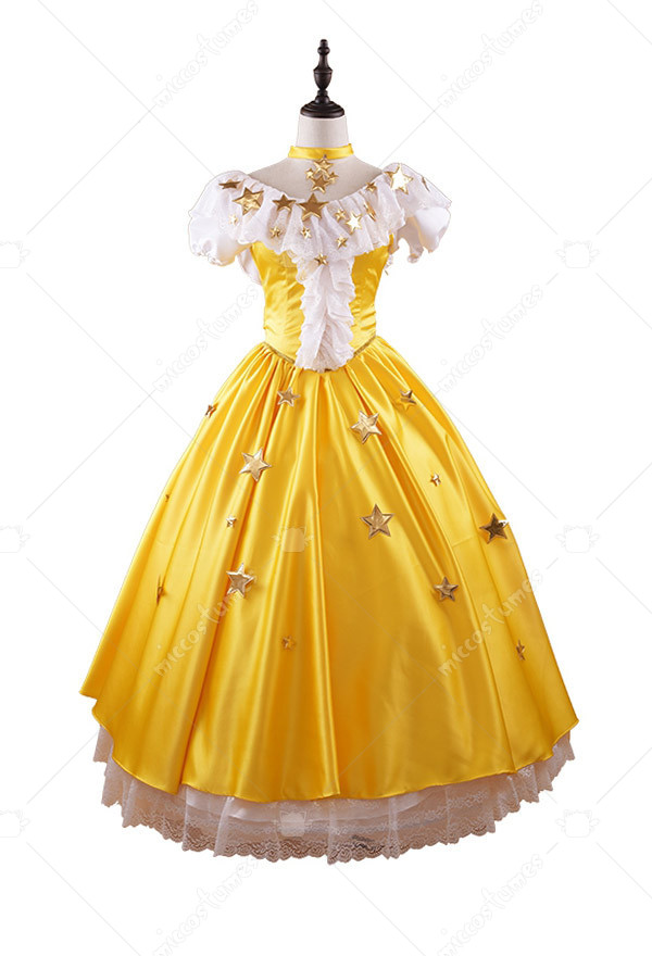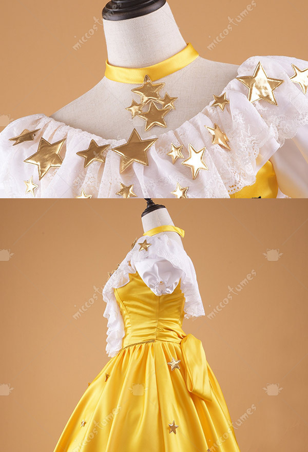 The costume includes dress, stars decoration, choker, star hair clip. It is made of matte satin, lace.