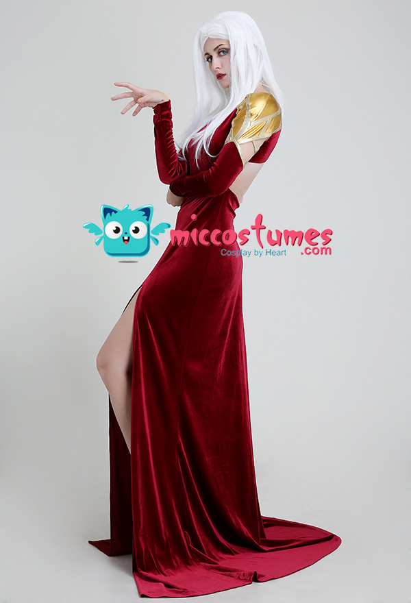 - Design details: Gold velvet and net yarn are spliced together, which is elastic and shiny. Sponge pads are added to the shoulders to be identical to the characters, with straight shoulders and a thin waist.