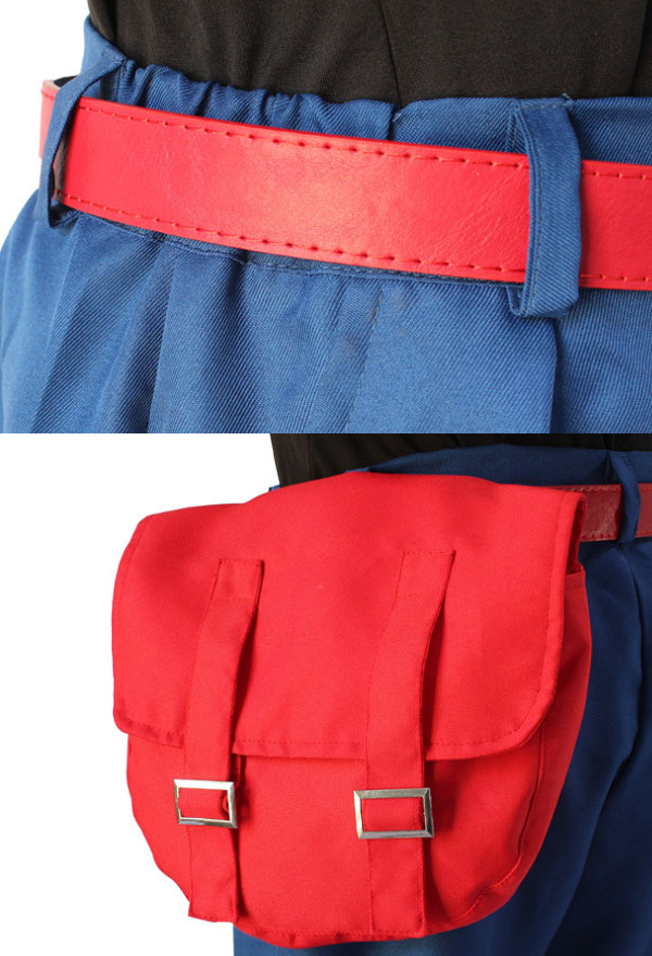 The costume includes hat, coat, T-shirt, shorts, belt, bag. It is made of uniform cloth.