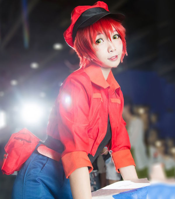 Cells at Work! AE3803 Erythrocyte Red Blood Cell Cosplay Costume Reversible Suit