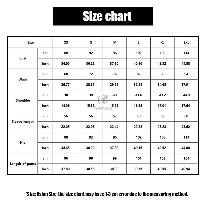 Included Items:Coat, belt, pants, gloves, leg cover, back clip