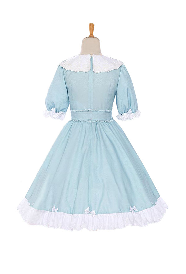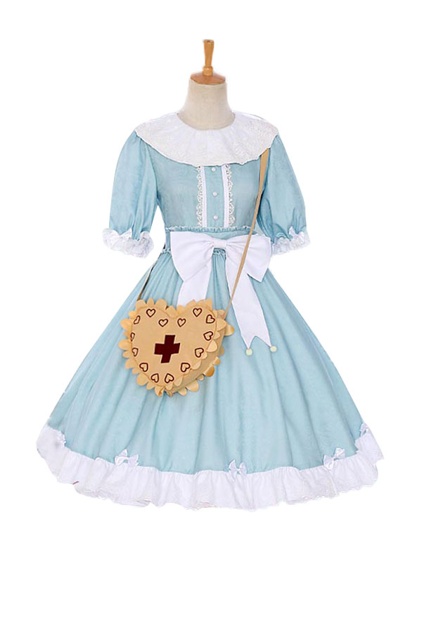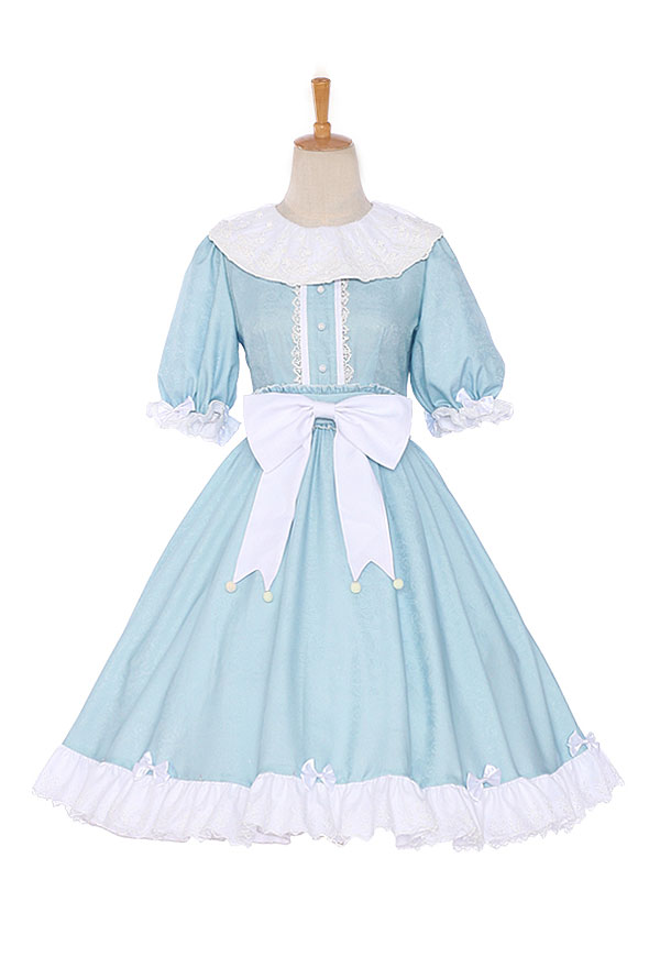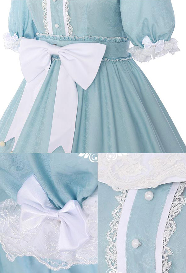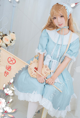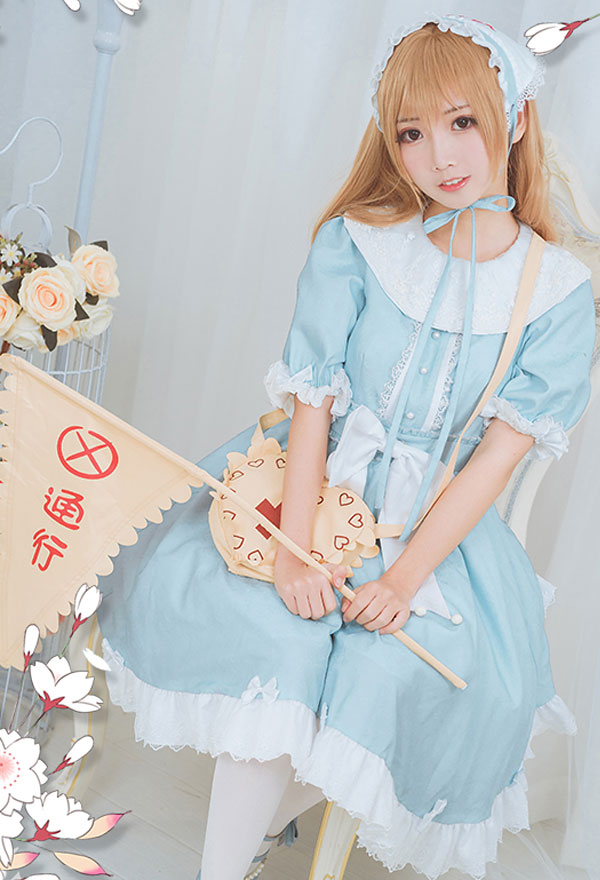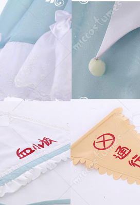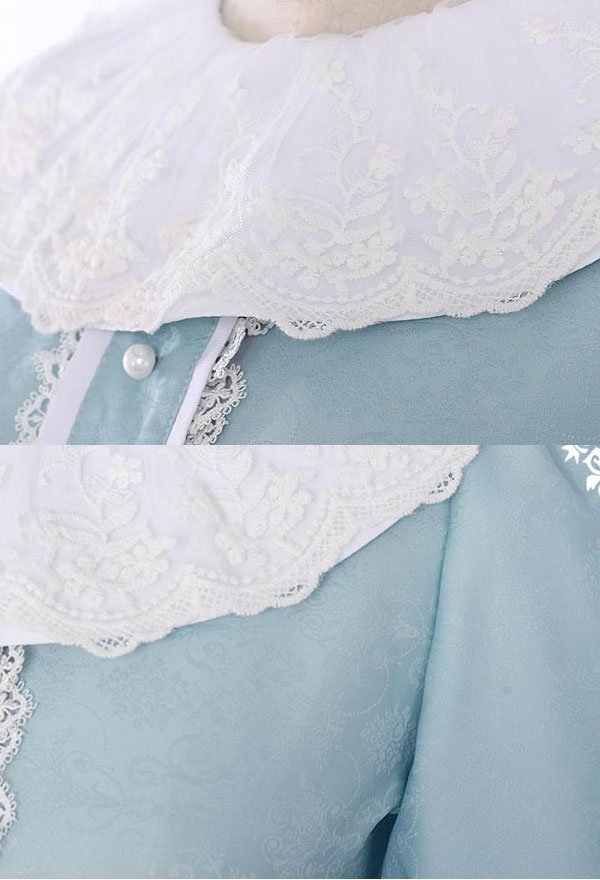 The costume includes dress, waist bowknot, flag, headdress. It is made of embroidery lace fabric, jacquard fabric.