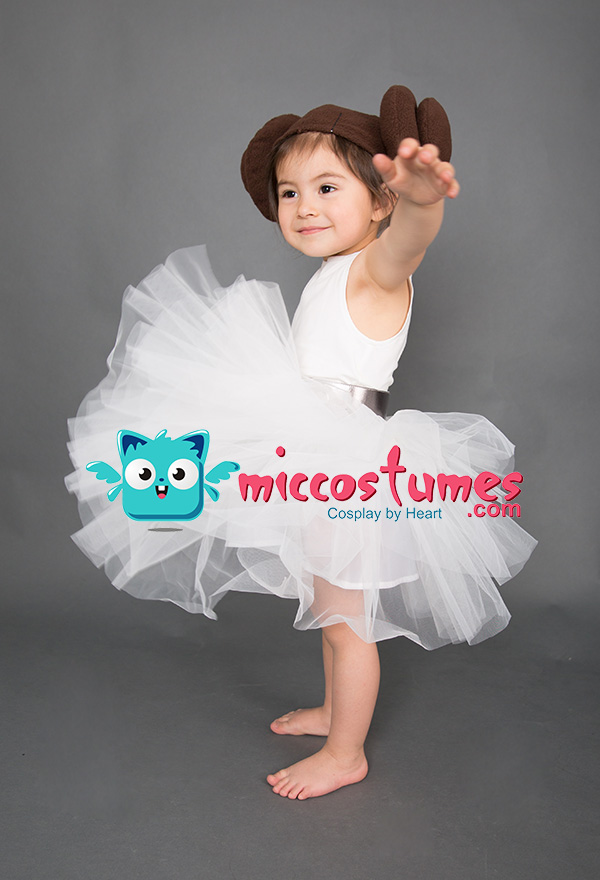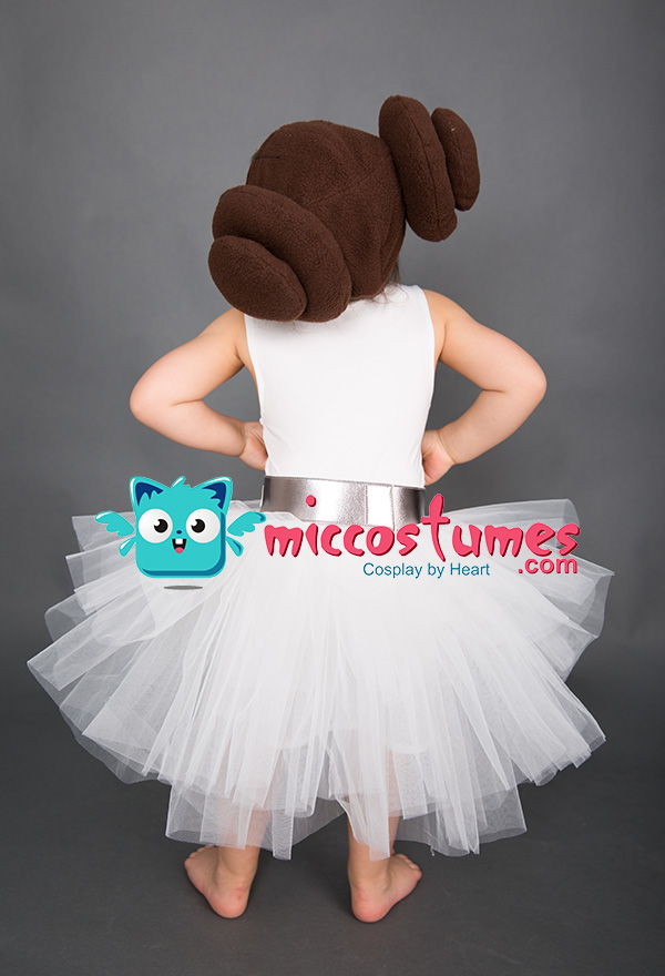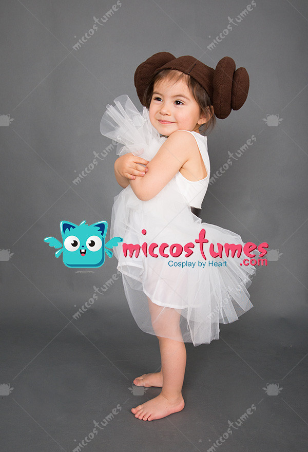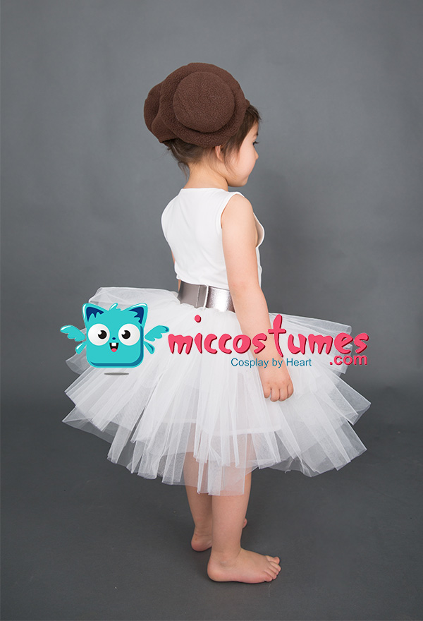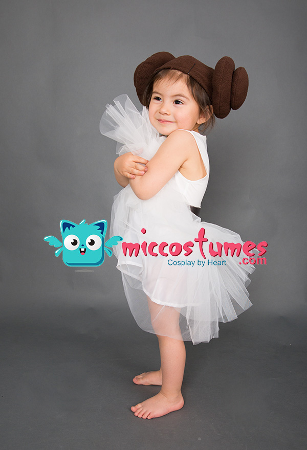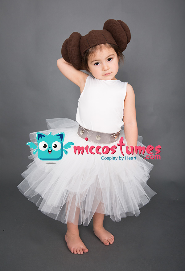This child Halloween cosplay costume is inspired by Princess Leia Organa. Order to made. It is not an official Lucasfilm product, not approved by or associated with Lucasfilm, but carefully manufactured by KISIBE Studio. Please understand that some parts of the accessories are different from the images. There may be some minor alterations. This costume includes top, skirt, belt, headgear. Suitable for children who are 35"-47" tall.