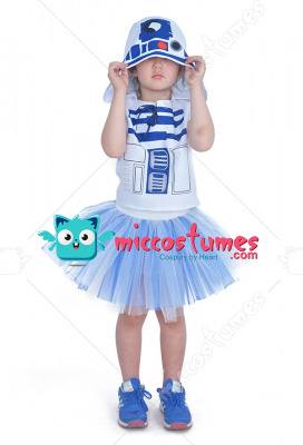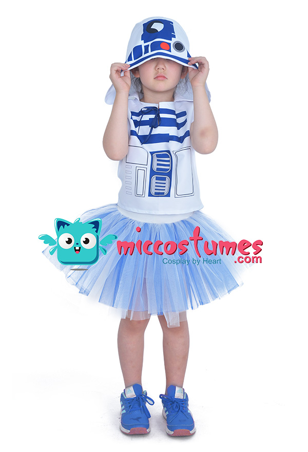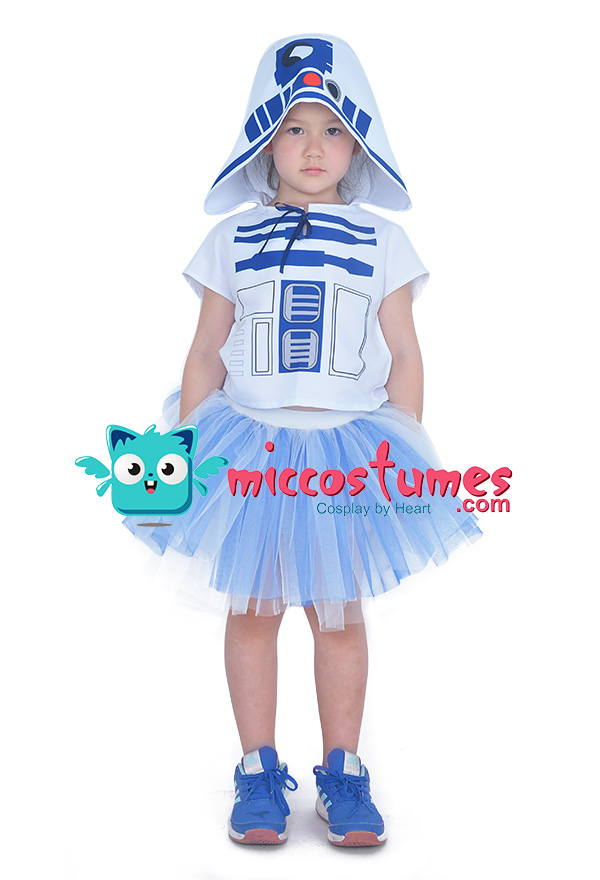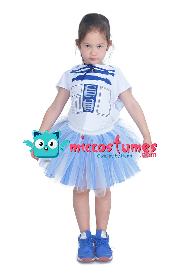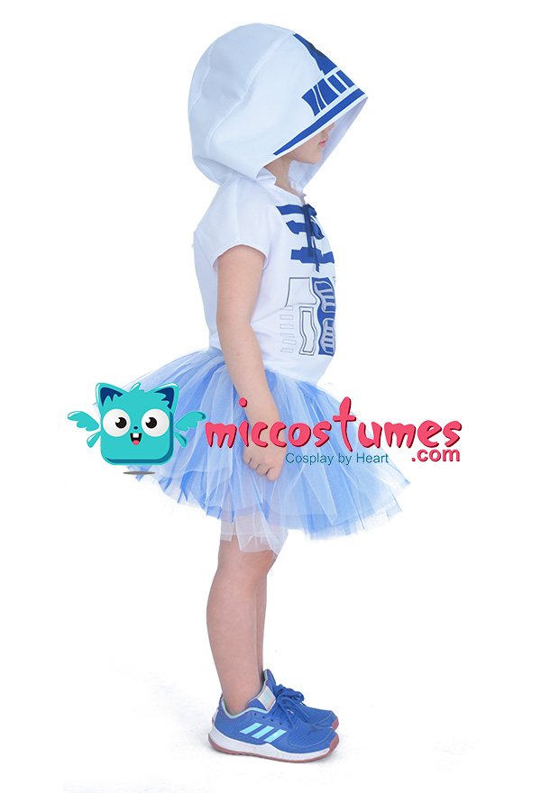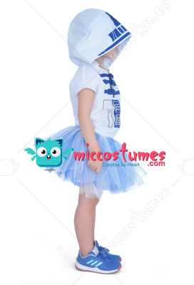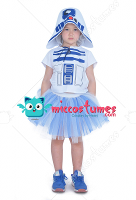 This child Halloween costume dress is inspired by Space Wars R2D2. Order to Made. It is not an official Lucasfilm product, not approved by or associated with Lucasfilm, but carefully manufactured by KISIBE Studio. Please understand that some parts of the accessories are different from the images. There may be some minor alterations. This costume includes hooded t-shirt, skirt. Suitable for children who are 35"-47" tall