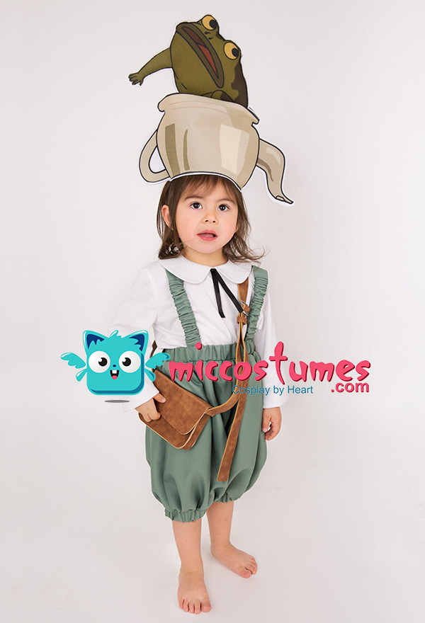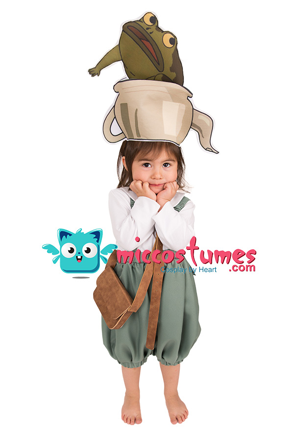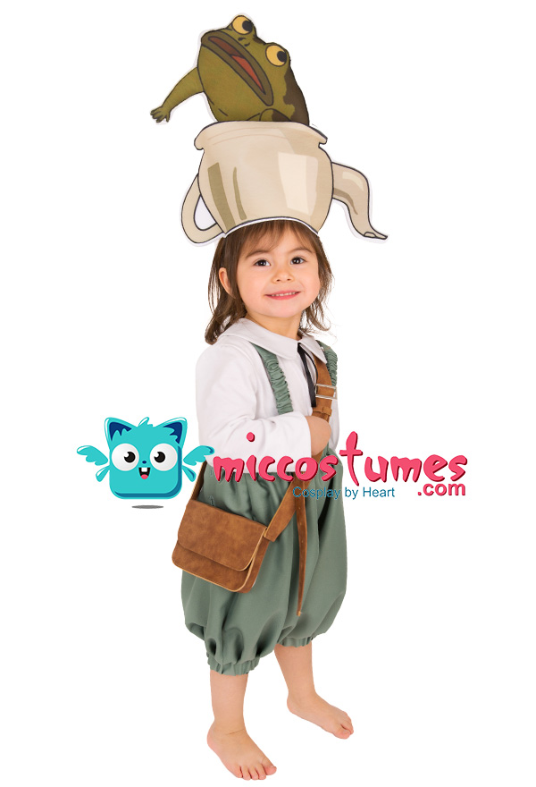 Please understand that some parts of the accessories are different from the images. There may be some minor alterations. This costume includes long-sleeved t-shirt, dungarees, teapot shaped hat, hat accessory, crossbody bag, Suitable for children who are 35"-47" tall.