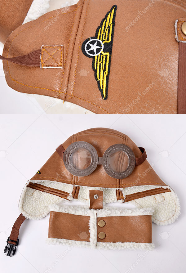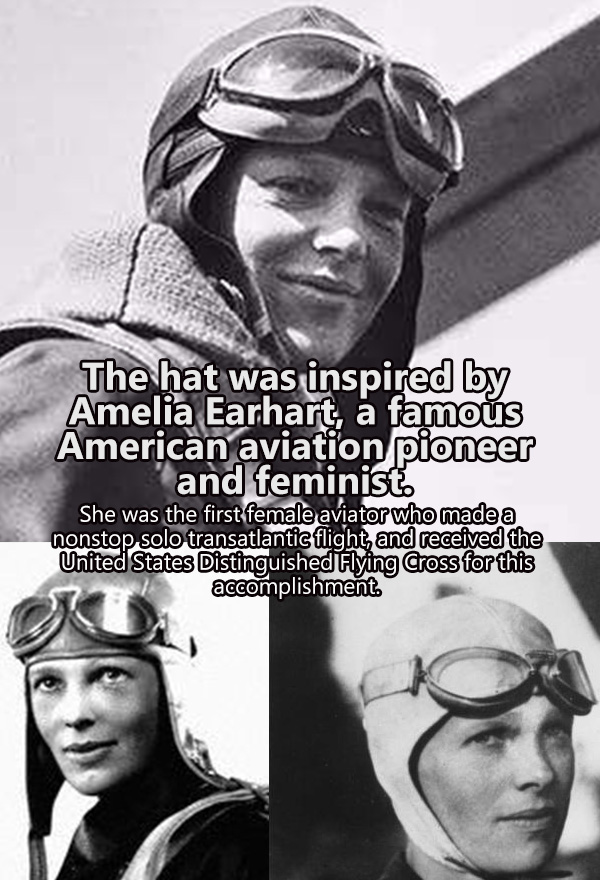It is made of PU leather, PVC, imitation leather. The hat was inspired by Amelia Earhart, a famous American aviation pioneer and feminist. She was the first female aviator who made a nonstop solo transatlantic flight, and received the United States Distinguished Flying Cross for this accomplishment.