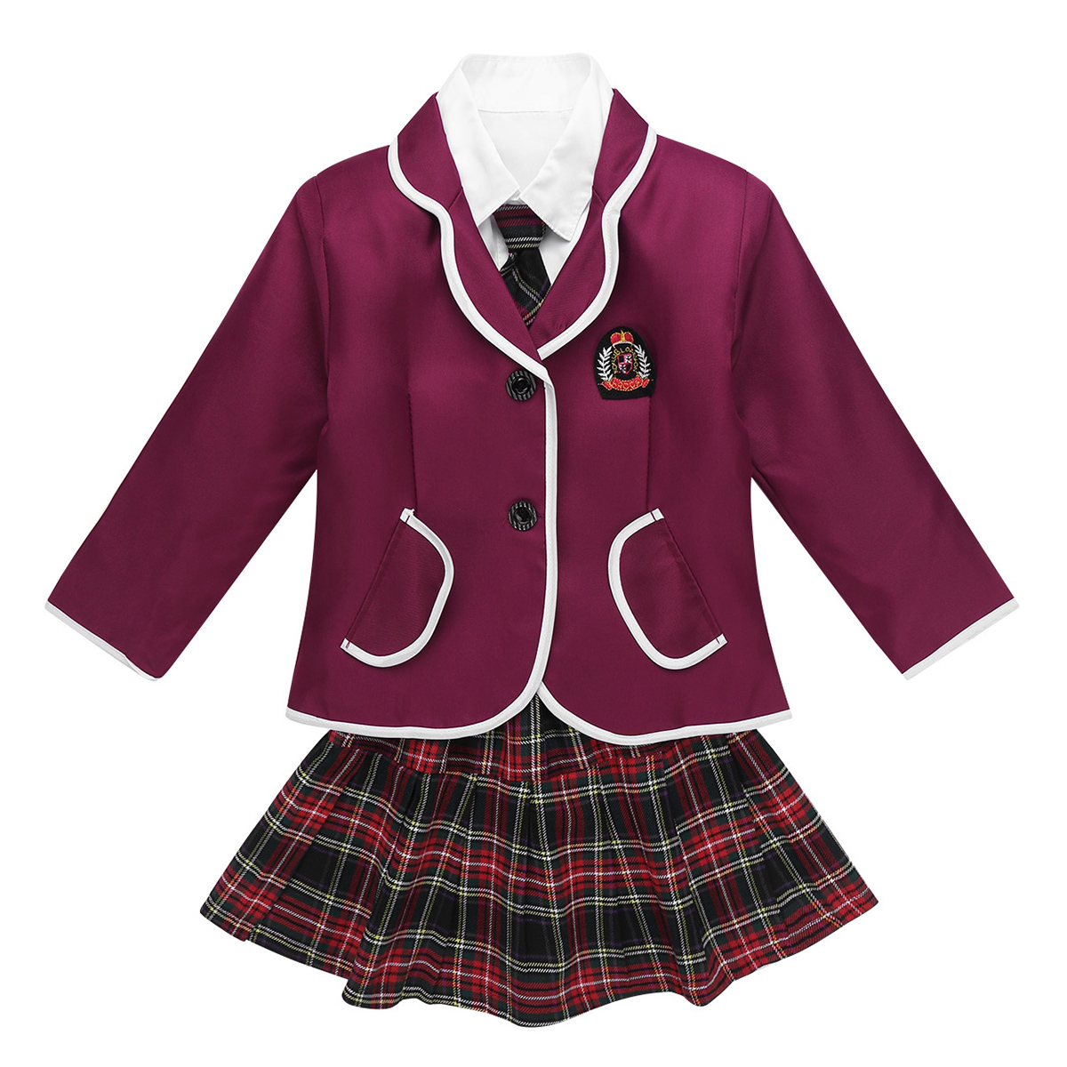 Set Include: 1Pc Coat, 1Pc Shirt, 1Pc Skirt, 1Pc Tie