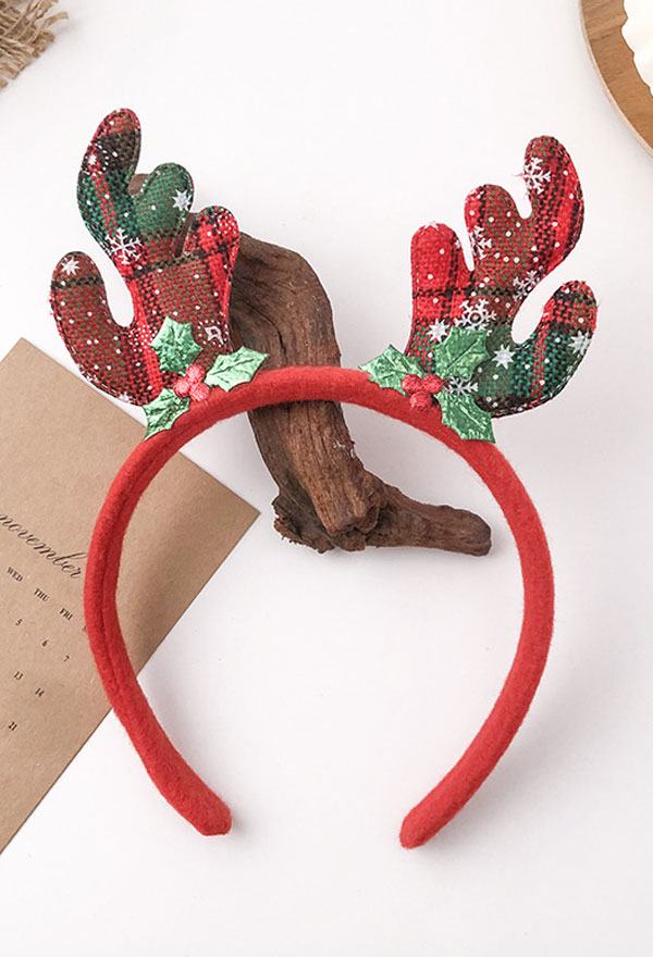 Christmas Headband Snowflake Reindeer Antlers Design Plaid Hair Band Santa Claus Holiday Party Accessory Headwear for Adults