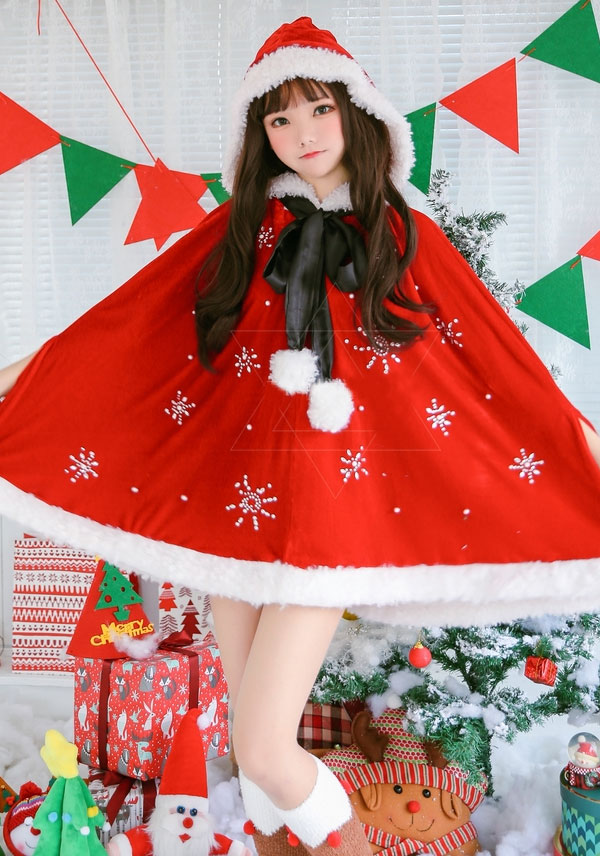 The costume includes cloak, shorts, choker. It is made of flannel, polyester fibre.
