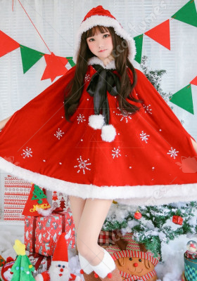 The costume includes cloak, shorts, choker. It is made of flannel, polyester fibre.