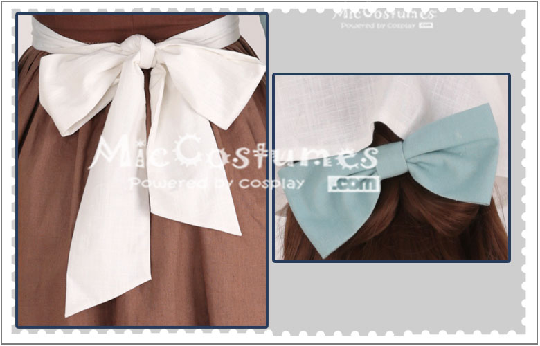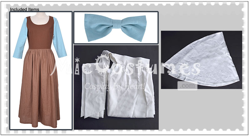 Please understand that some parts of the accessories are different from the images. There may be some minor alterations. The costume includes headwear, dress, apron and headscarf. The costume is made of cotton and linen. It is inspired by Cinderella Order to made. It is not an official Disney product, not approved by or associated with Disney, but carefully manufactured by KISIBE Studio.