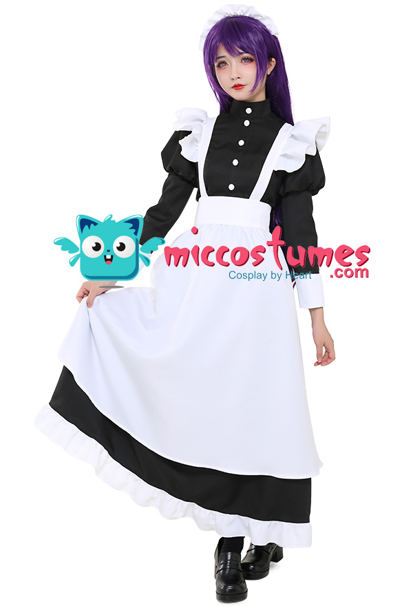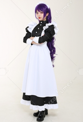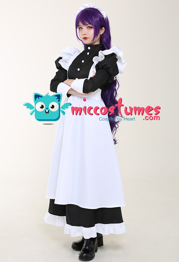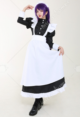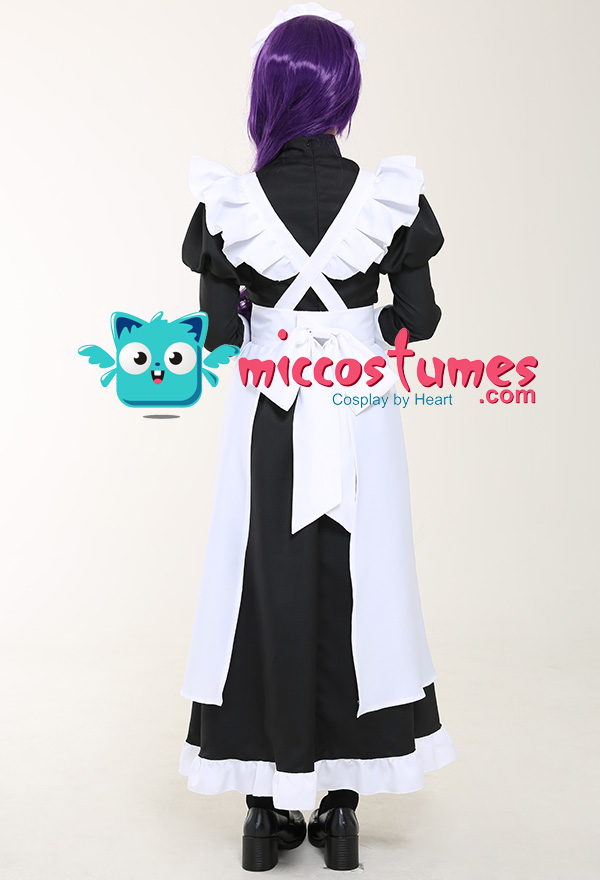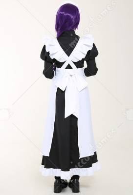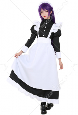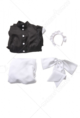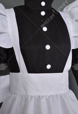 The costume includes dress, apron, headwear, bow. It is made of uniform cloth, spandex.