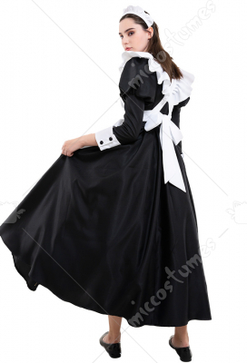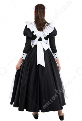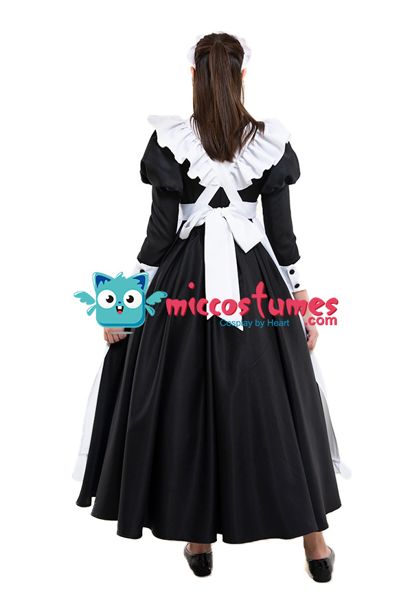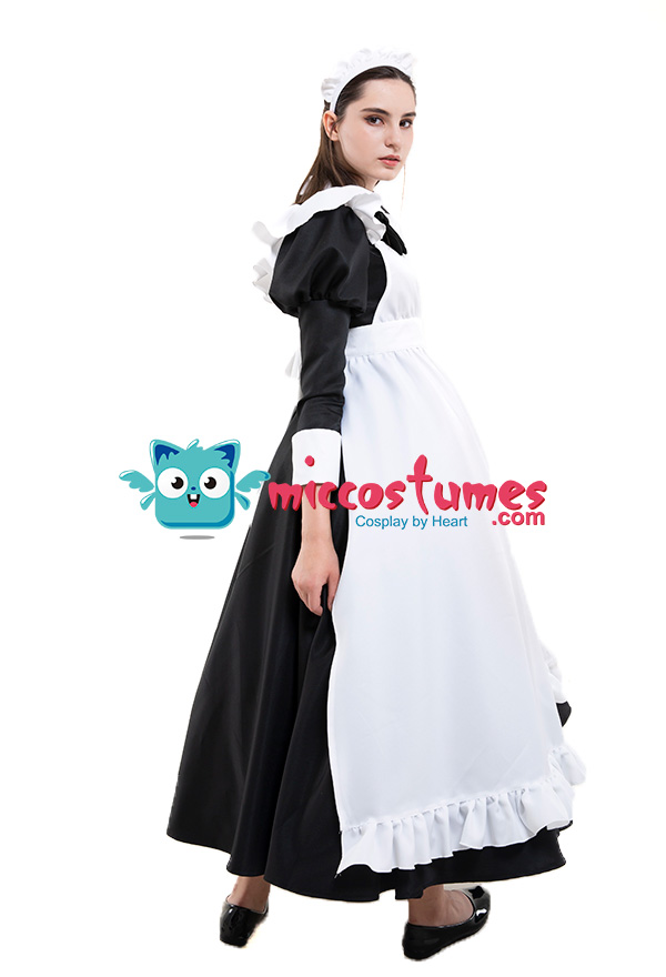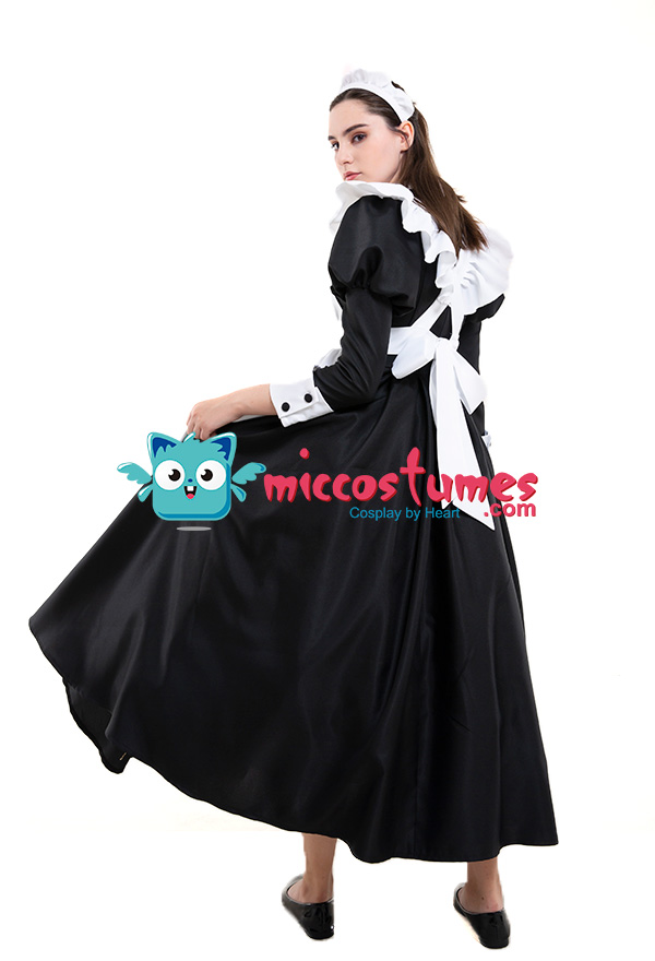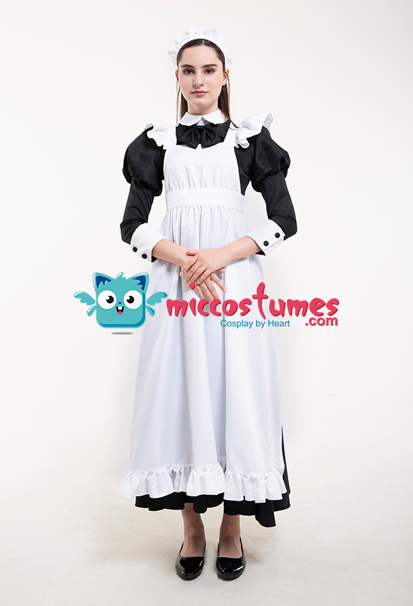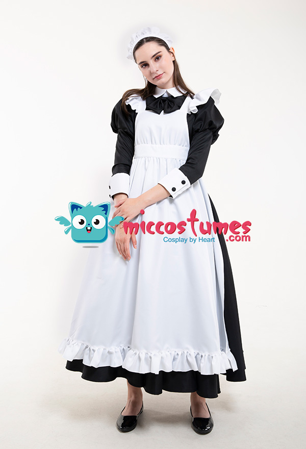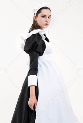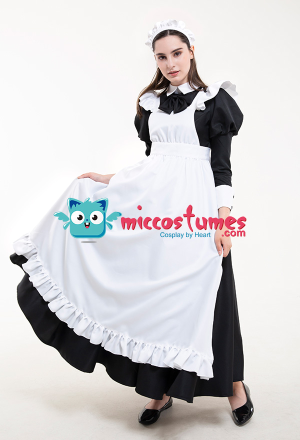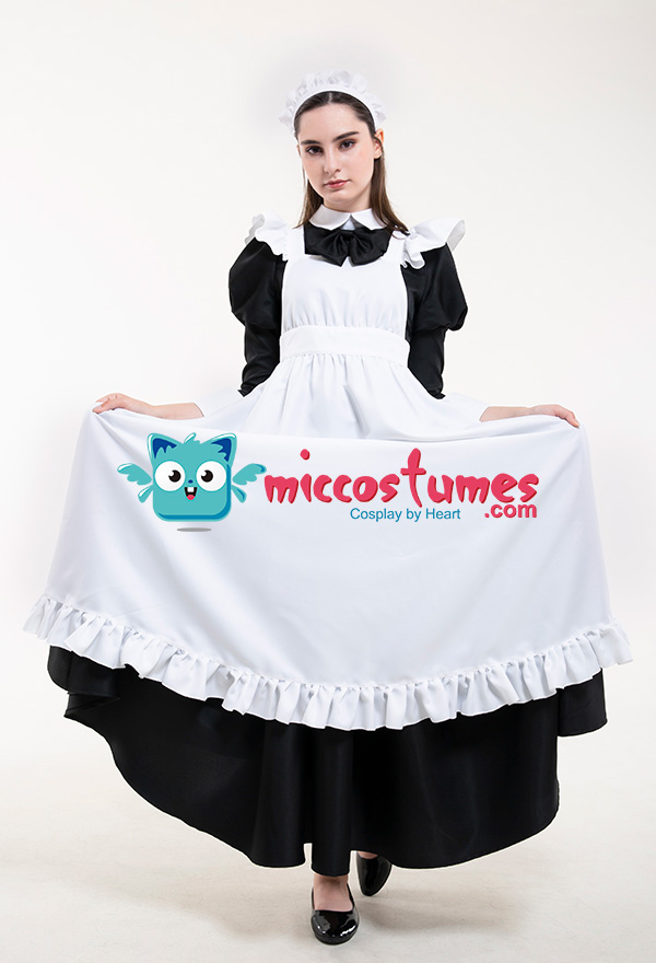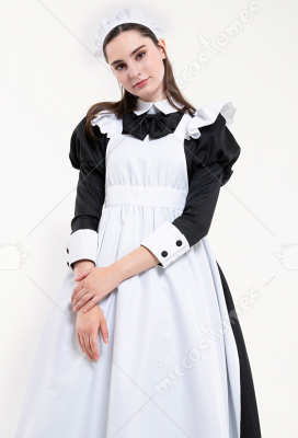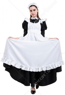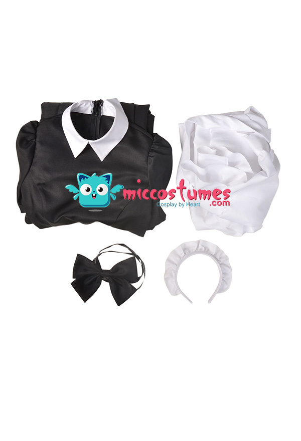 The costume includes dress, apron, headwear, bowknot. It is made of uniform cloth, spandex.
