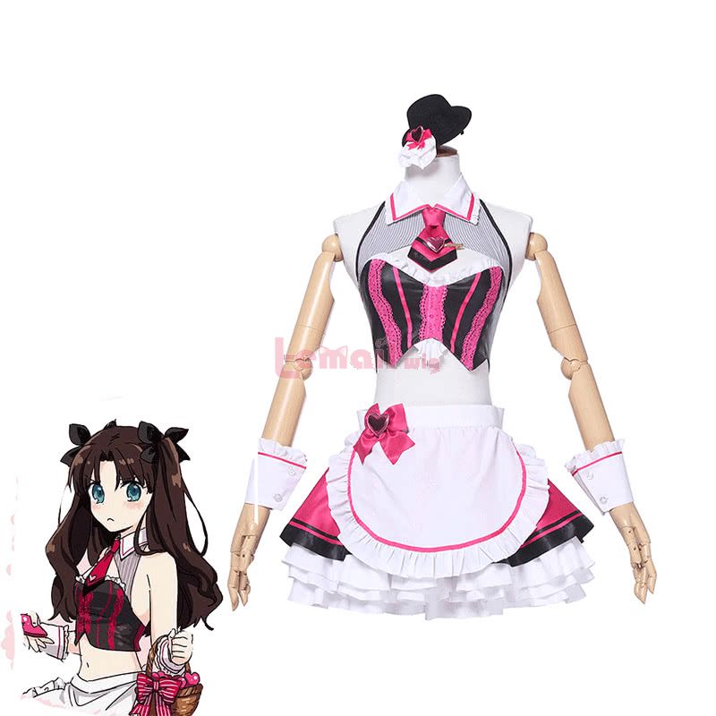 Fate/Grand Order Rin Tohsaka Game Cosplay Costumes Valentines Street Choco Maid Uniforms Rose Red Dresses