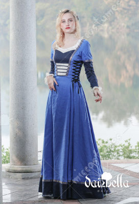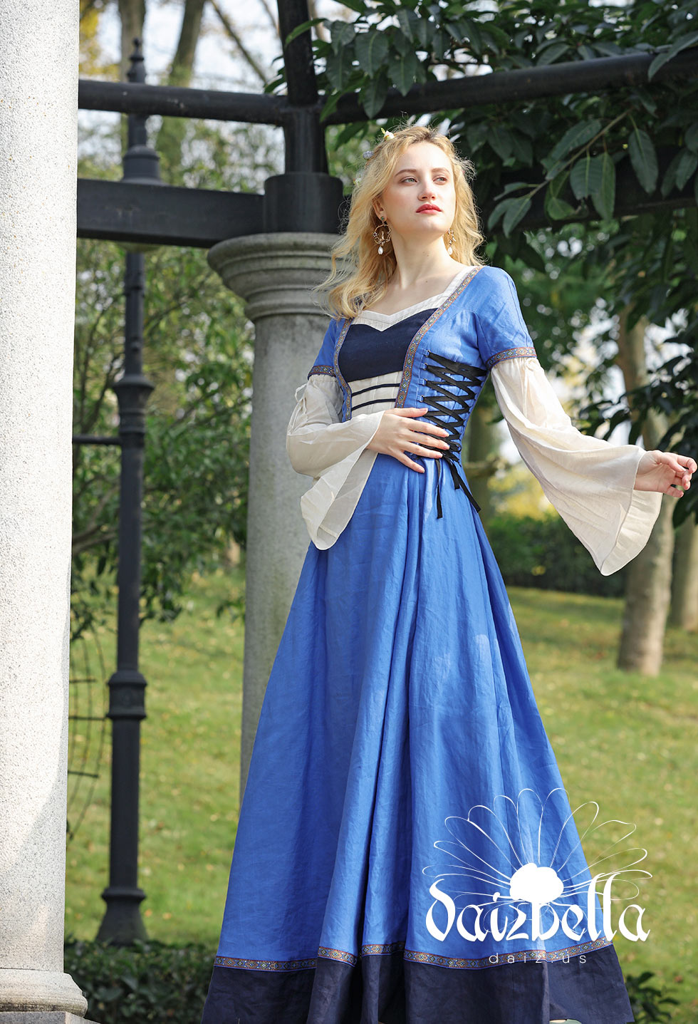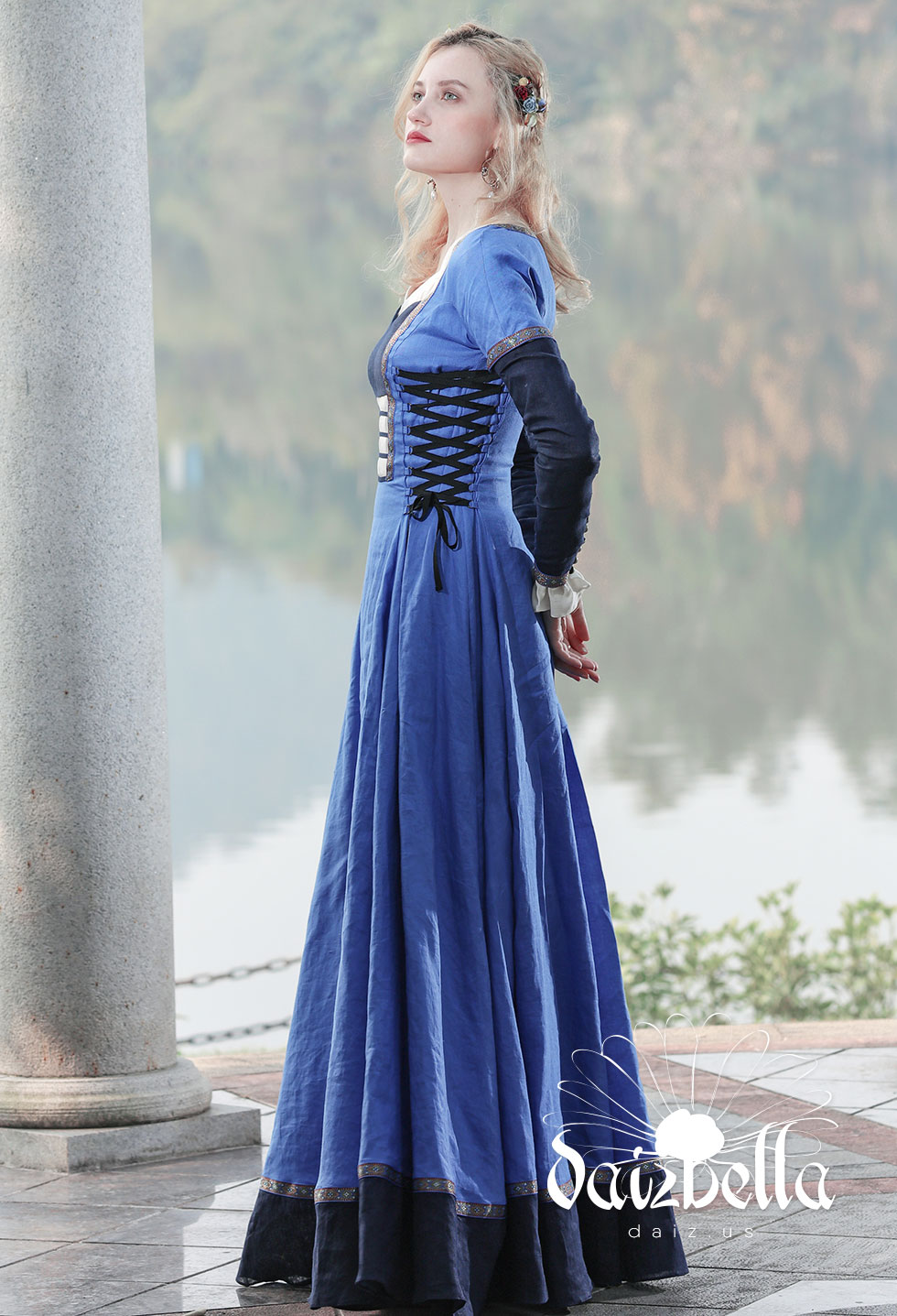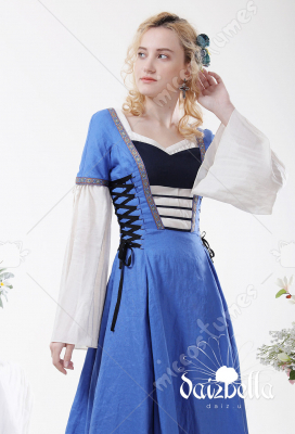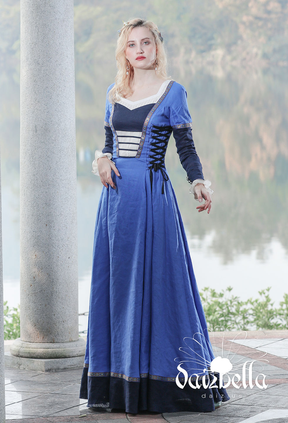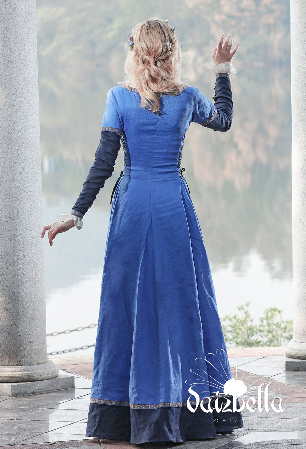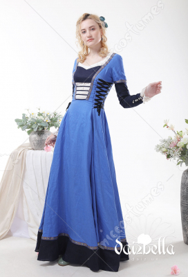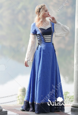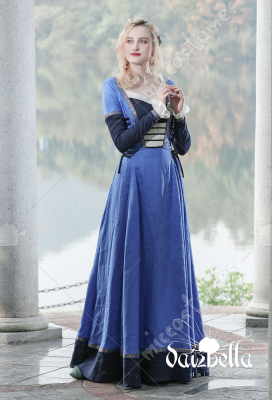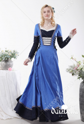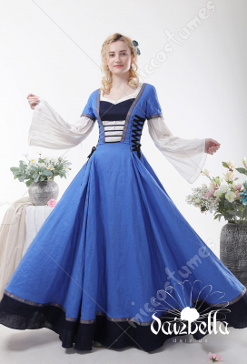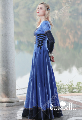 • It's inspired by the popular look and silhouette of wearing in Middle Ages. The retro color and the classic embroideries make the delicate dress. The noble and mysterious blue adds some luxurious sense to the dress and is full of charm.