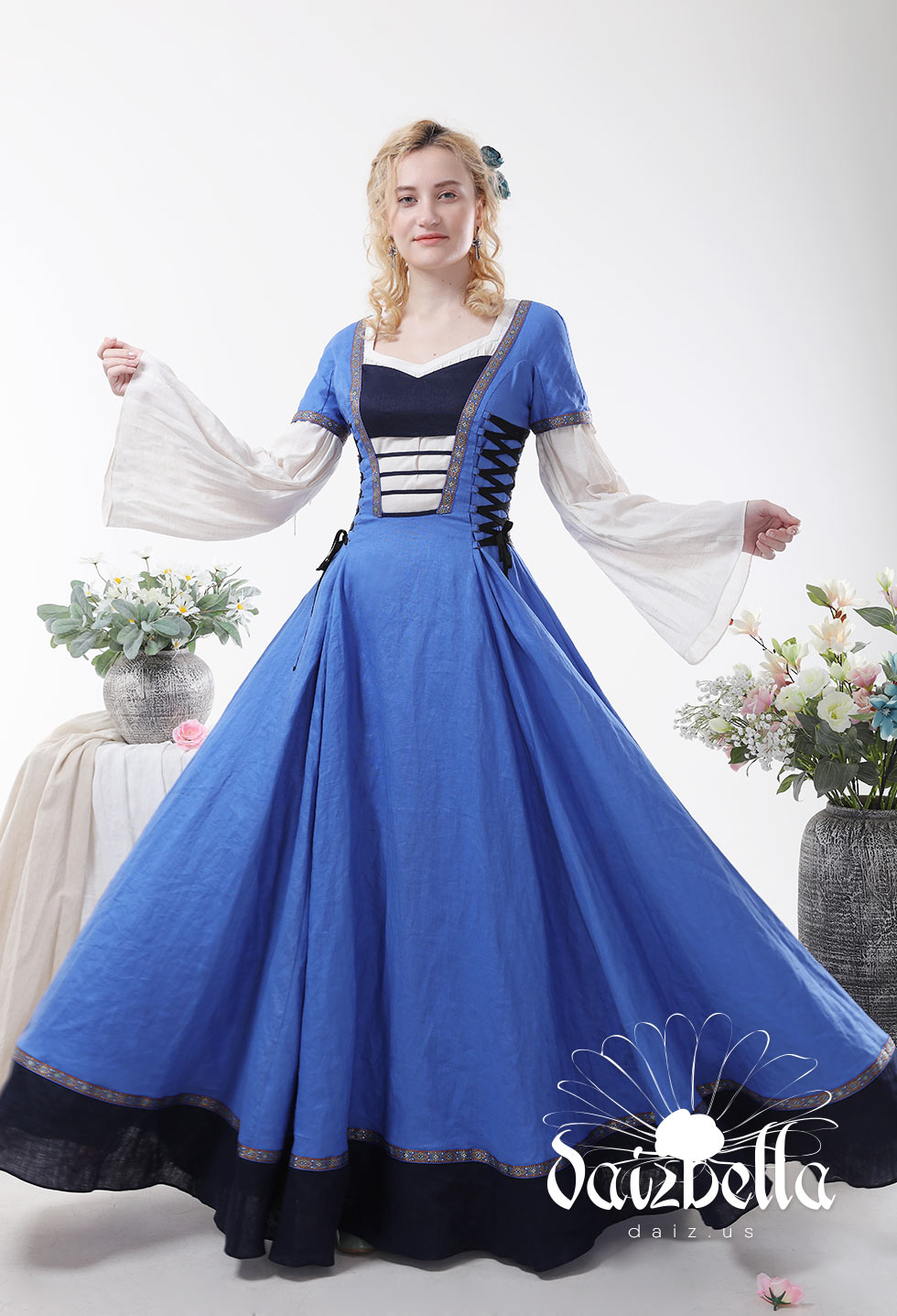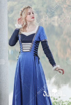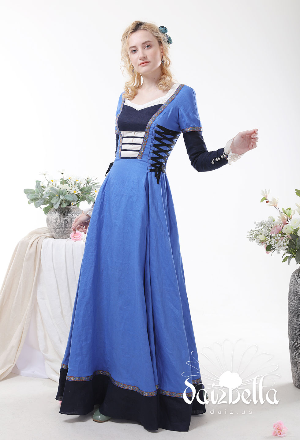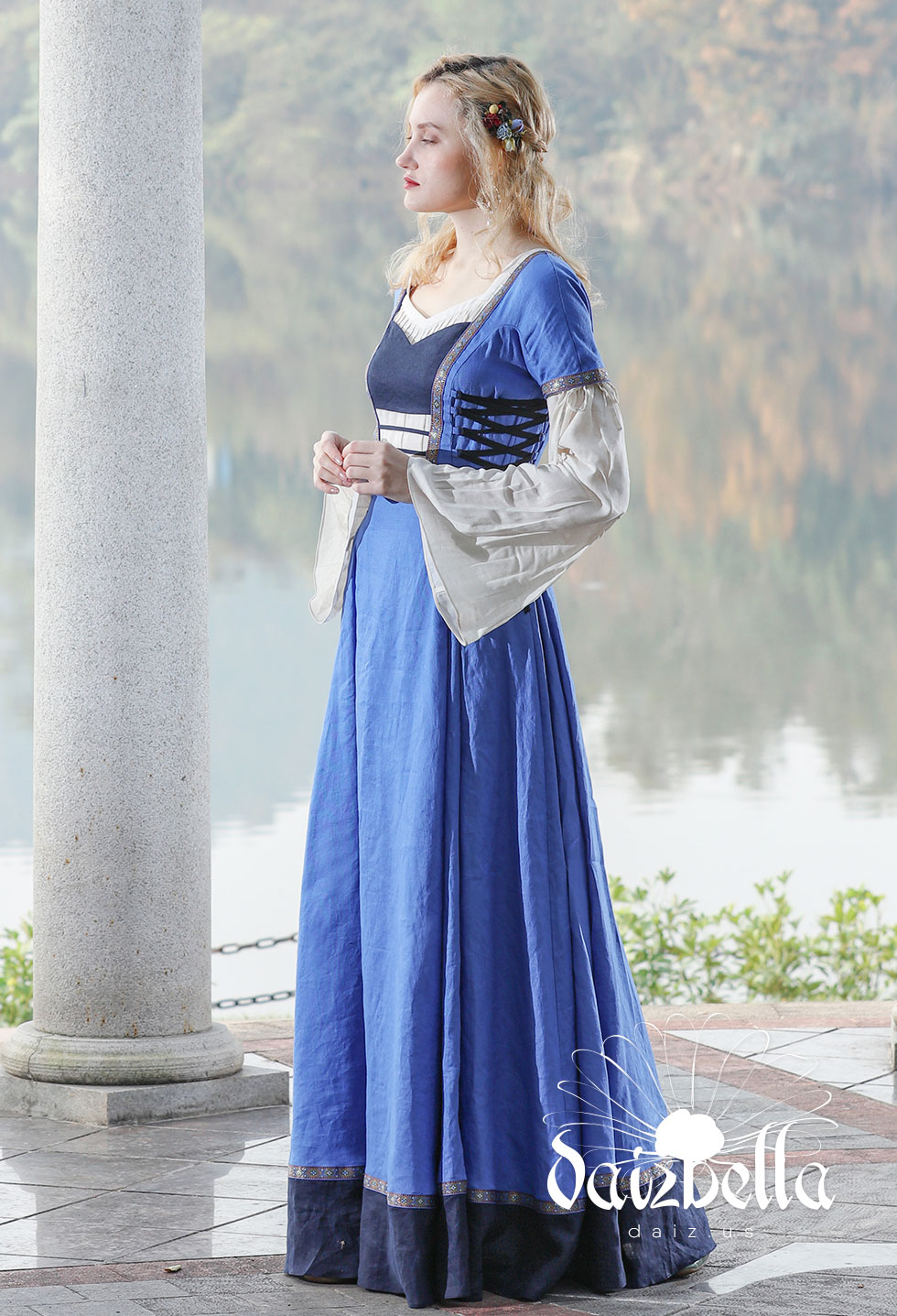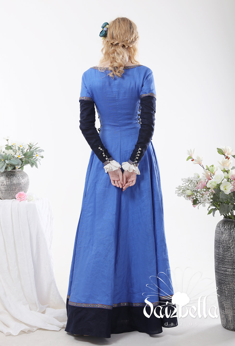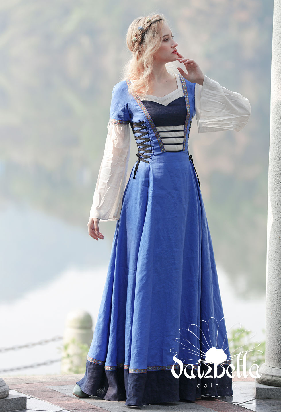 • It's inspired by the popular look and silhouette of wearing in Middle Ages. The retro color and the classic embroideries make the delicate dress. The noble and mysterious blue adds some luxurious sense to the dress and is full of charm.