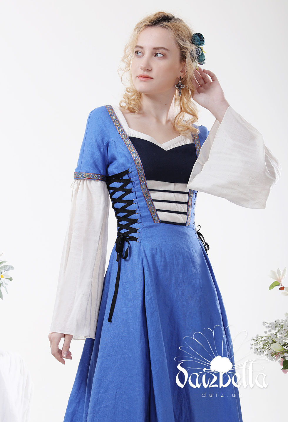 Cranch: Medieval XVI Century Handmade Natural Linen Dress with Removable Sleeves