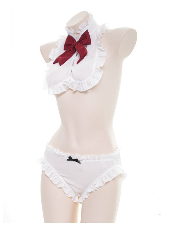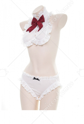 The costume includes top, briefs, bowknot. It is made of chiffon.