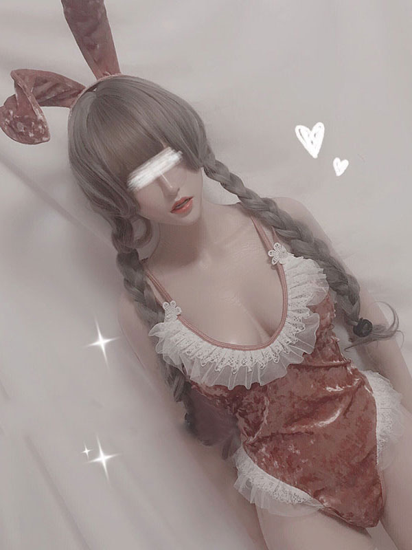 It is suitable for who weighs no more than 60 kg. Style: #1 includes bodysuit, rabbit ear, choker. #2 includes bodysuit, rabbit ear, net stockings, choker. #3 includes bodysuit, rabbit ear, choker, net stockings, leg strap*1. It is made of lace, velvet. credit:nyamitsuki