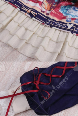 The costume includes dress and hair accesory. It is made of Paris twill material.