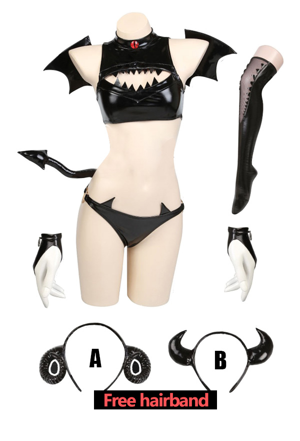 Costume Includes: top, briefs, gloves, stockings, hairband. Note: 1. Please take a note to tell us you choose type A or type B devil horn hairband. It is made of patent leather. 2. The devil horn of the headgear is a gift item, A and B are random, and no return or exchange service will be accepted. 3. These headwears are easy to be damaged during transportation. 4. If the weather is hot and the temperature is high, headwears will be easily degummed. So suppose that you received a degumming headwear, please glue it by yourself. credit:loulausch_cosplay