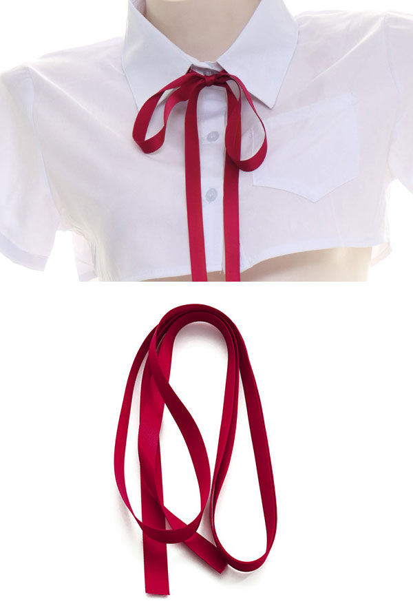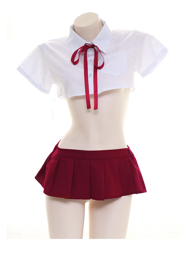 The costume includes short shirt, skirt, ribbon*1. It is made of terylene.