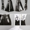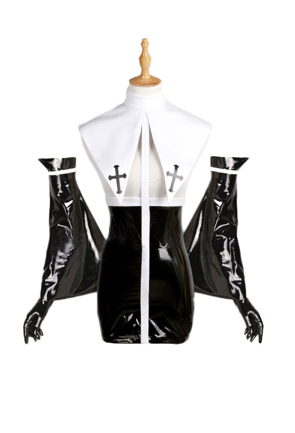 The costume includes top, skirt, briefs, stockings, sleeve*2, glove*2, hat. It is made of patent leather. Cosplayer: 蜜汁猫裘