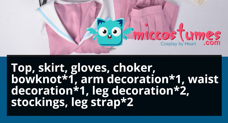 | Included Items | Top, skirt, gloves, choker, bowknot*1, arm decoration*1, waist decoration*1, leg decoration*2, stockings, leg strap*2 |