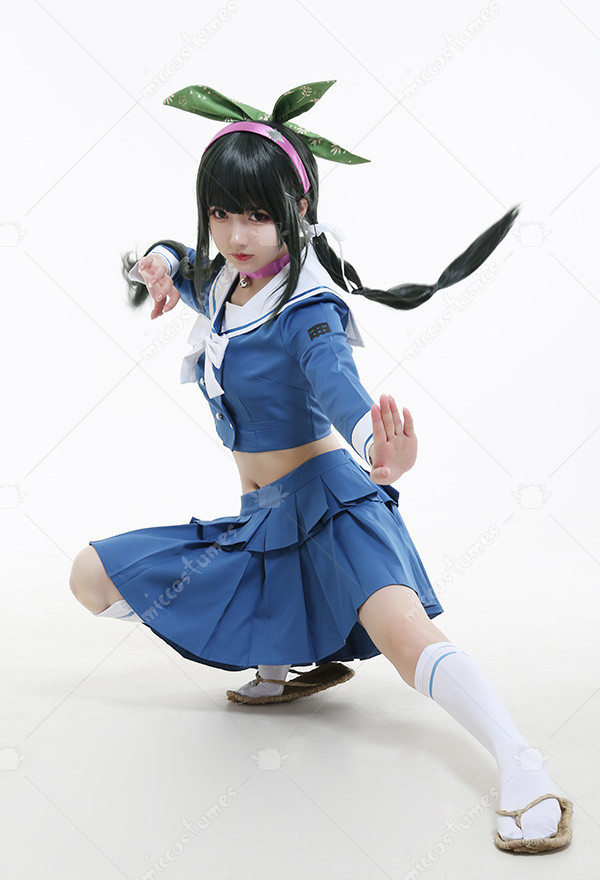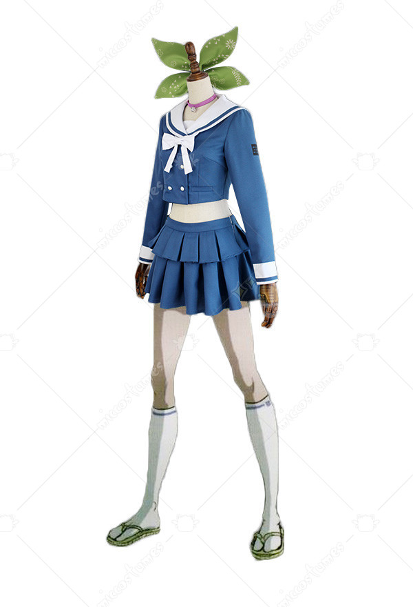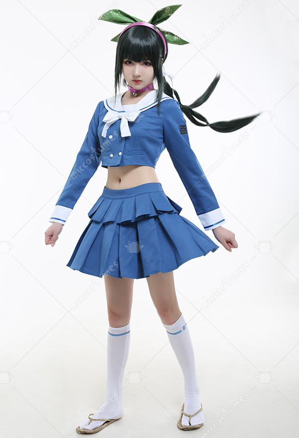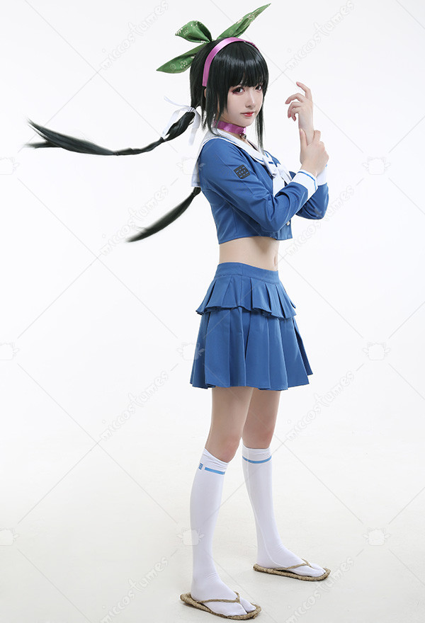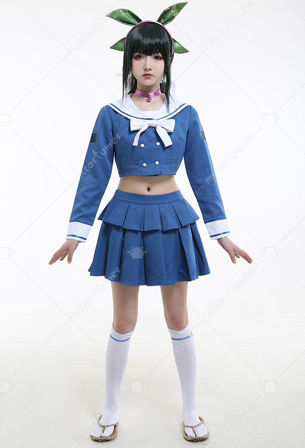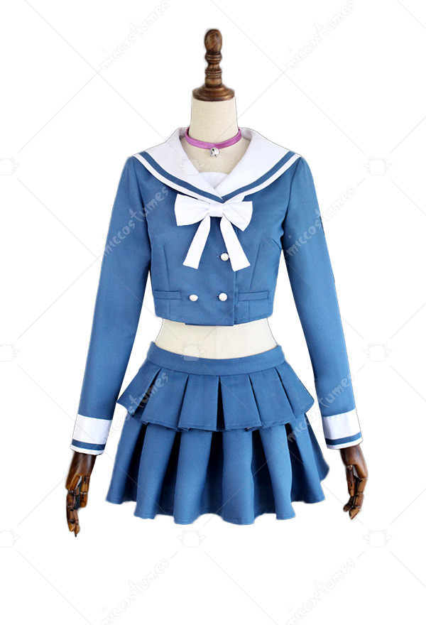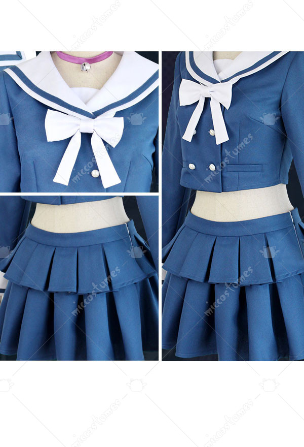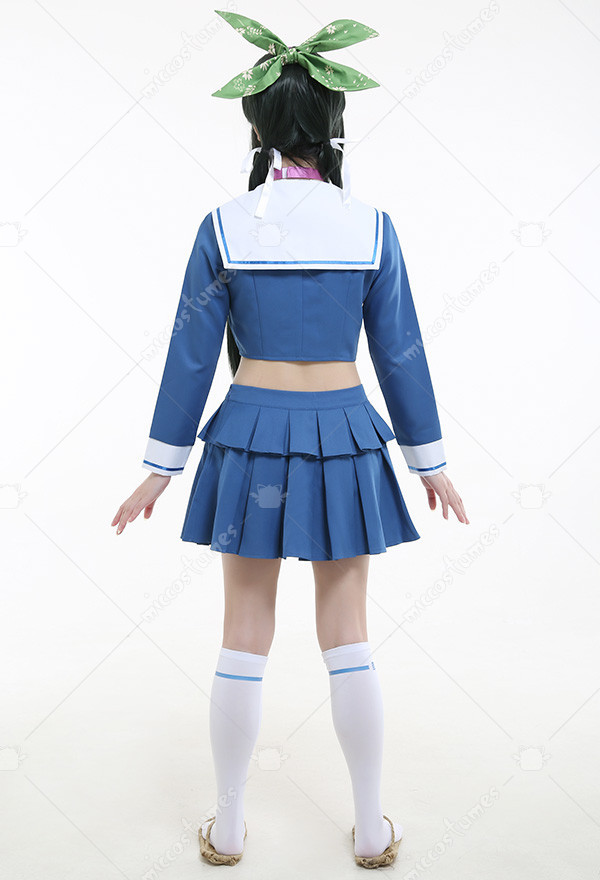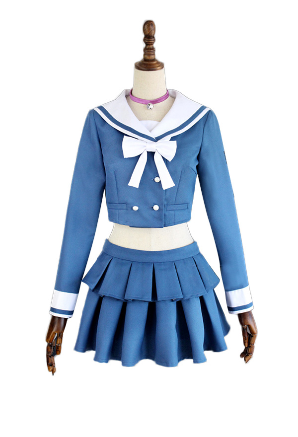 The following Asian Sizes costume includes top, skirt, bow tie, socks, neckwear, headdress, headband, white ribbon headdress×2. It is made of uniform cloth. Blue navy costume, designed with dew waist style, perfect restore the original version.