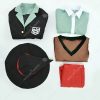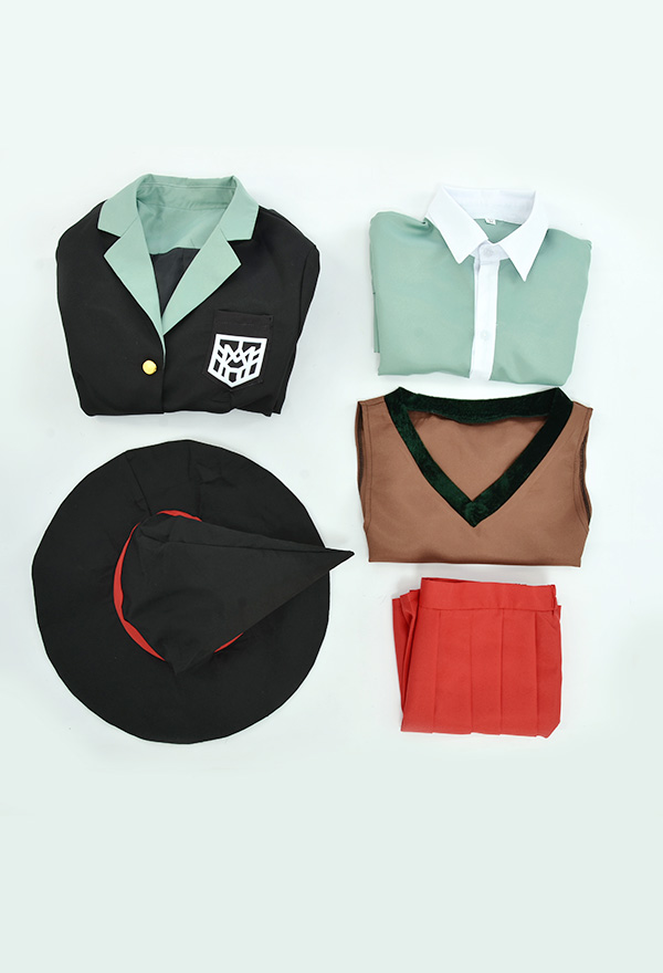 This costume includes coat, skirt, shirt, vest and hat. It's made of polyester and hemp blend.