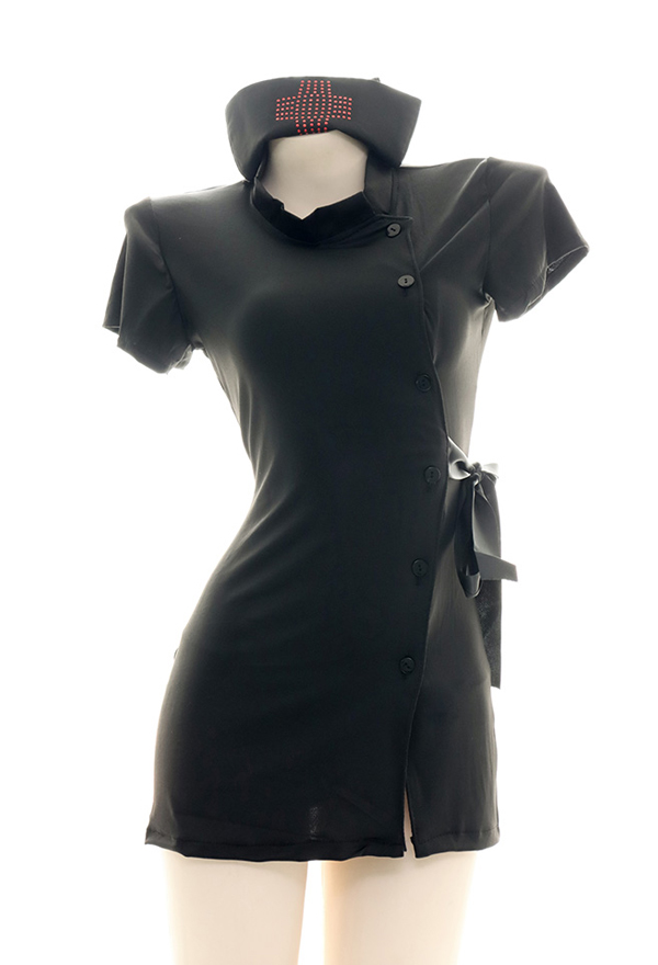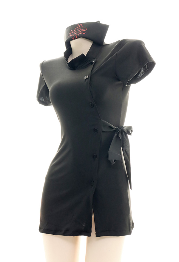 Dark Gothic Dress Nurse Role Play Uniform Dress Lingerie Sleepwear