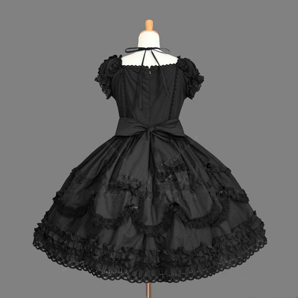The costume includes dress, petticoat, bowknot. It is made of cotton fabric.