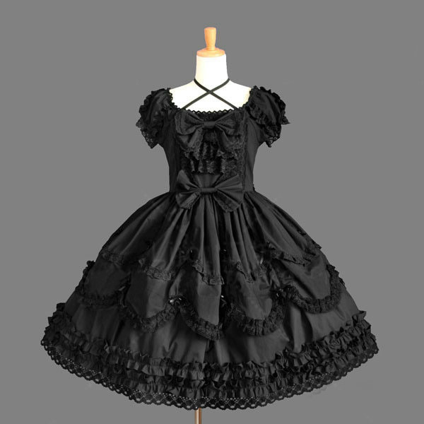 The costume includes dress, petticoat, bowknot. It is made of cotton fabric.
