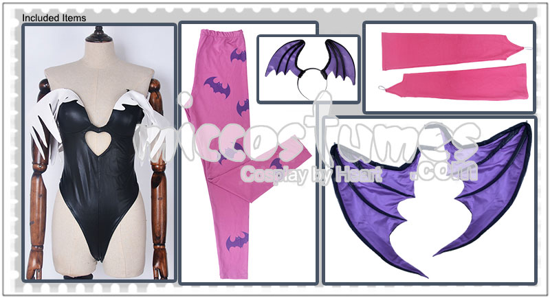 Including: Leotard top, headwear, headdress, wings×2, gloves×2, trousers. Material: Spandex, PU leather, cotton, satin| Costume set include Leotard top, headwear, headdress, gloves×2, trousers.