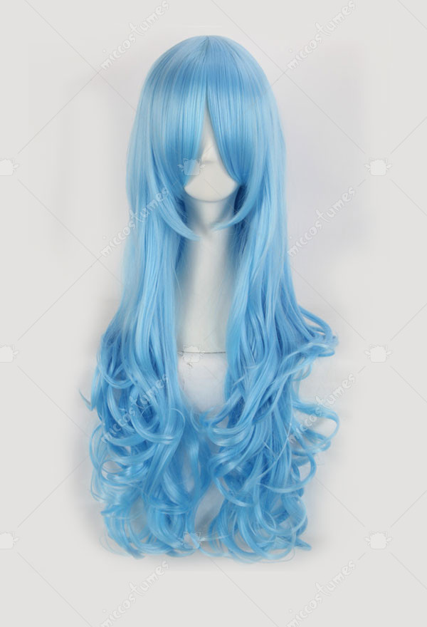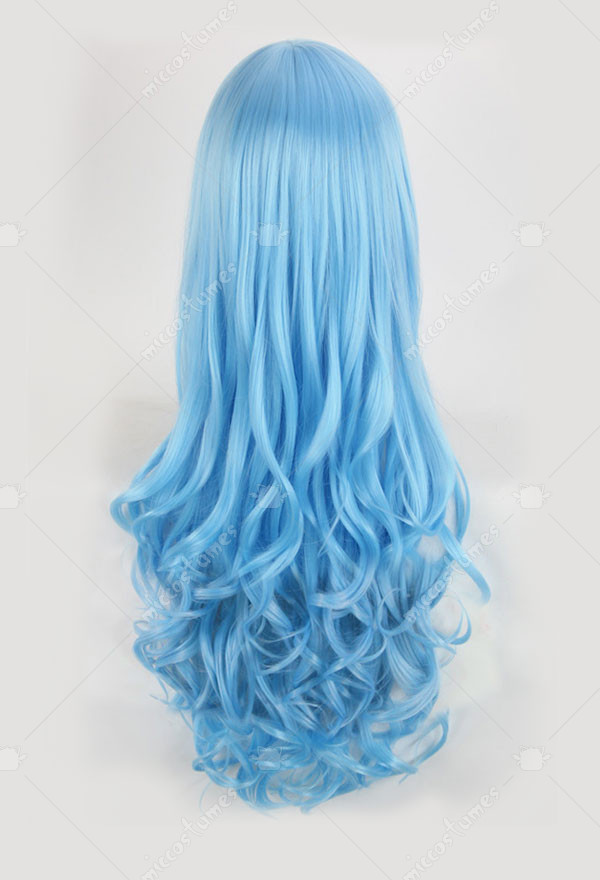 The wig is 80cm long. It is made of high temperature fiber. It can be adjusted by adjustment buckle. We have sky blue and water blue colors. Please take a note to tell us which color you want to choose. Otherwise, we will ship out randomly.