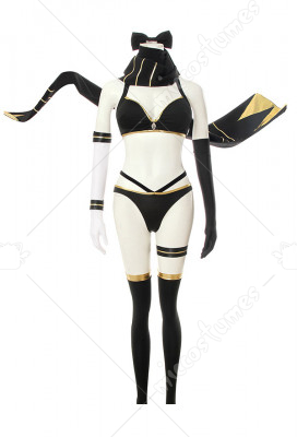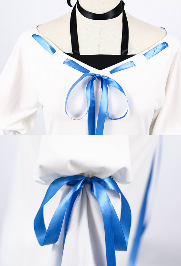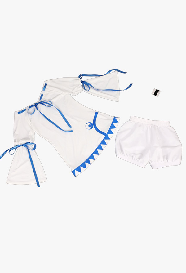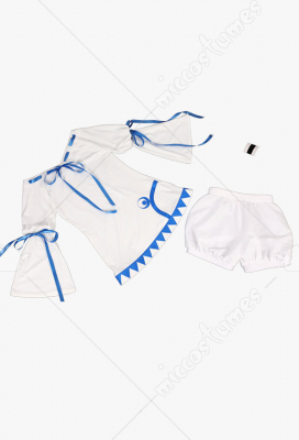 The costume includes hair clip*2, dress, shorts. It is made of knitted fabric, satin, shirt fabric, linning cloth.