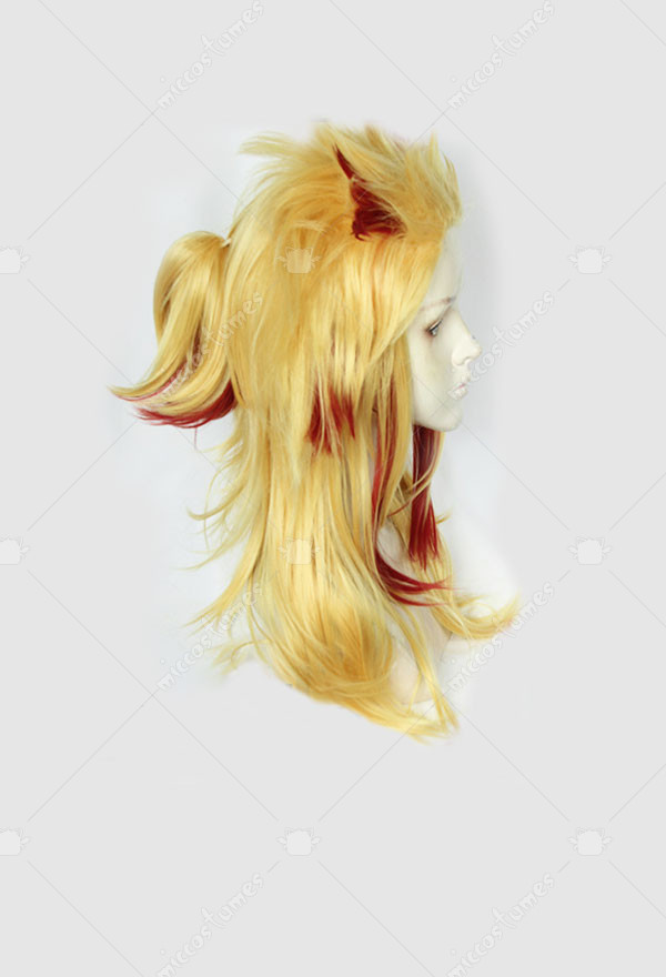 The wig is 60cm long. It is made of high temperature fiber.