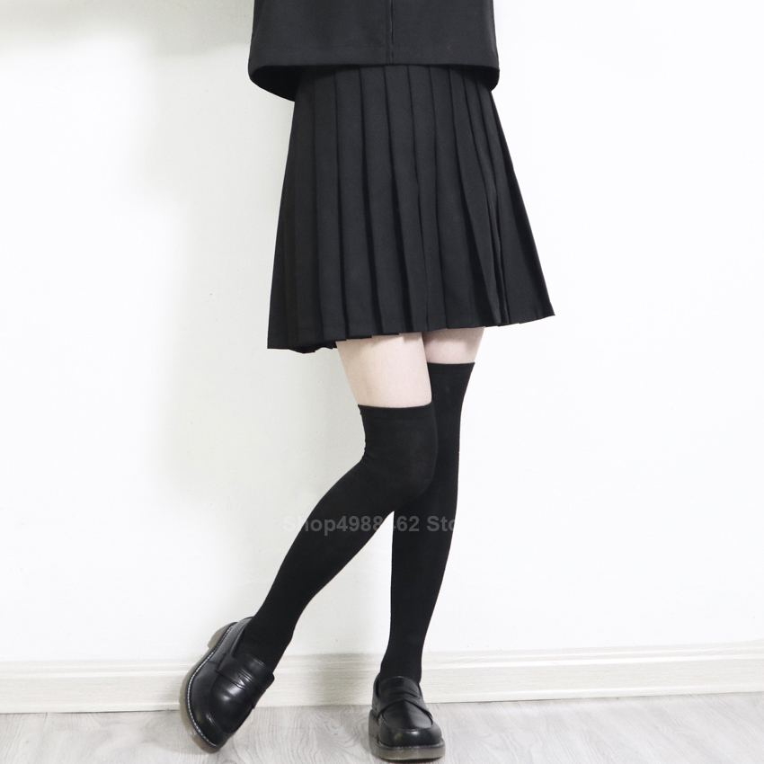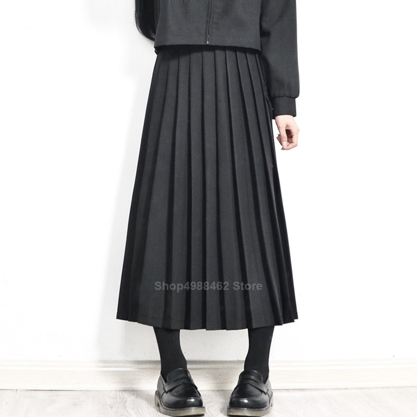 Elastic Waist Japanese Student Girls School Uniform Solid Color JK Suit Pleated Skirt Short/Middle/Long High School Dress