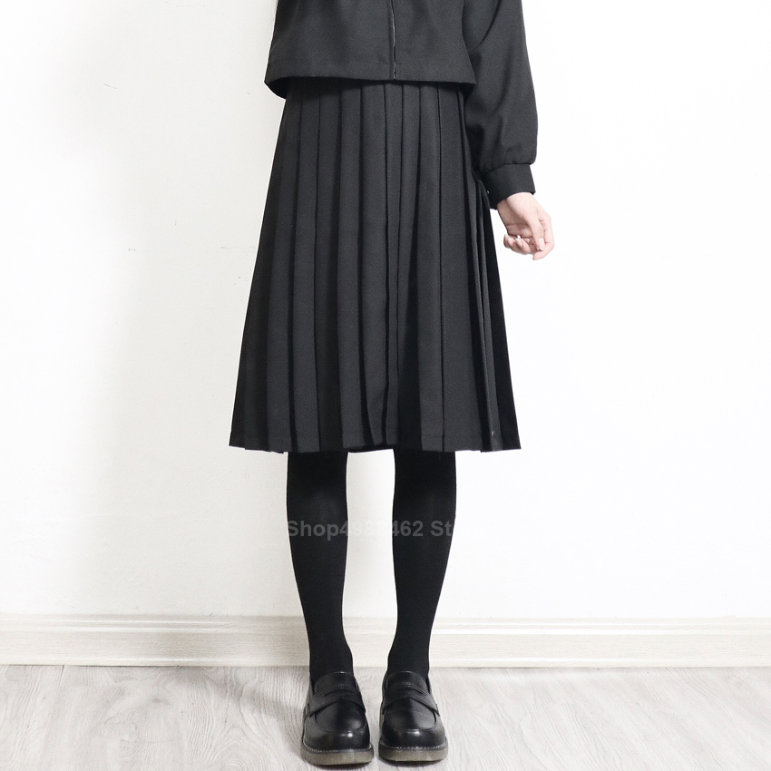 Be the first to review “Elastic Waist Japanese Student Girls School Uniform Solid Color JK Suit Pleated Skirt Short/Middle/Long High School Dress”